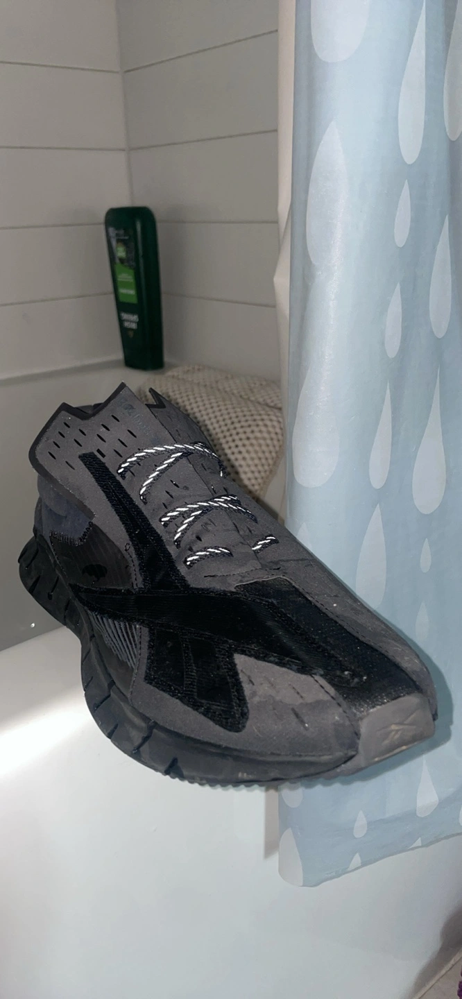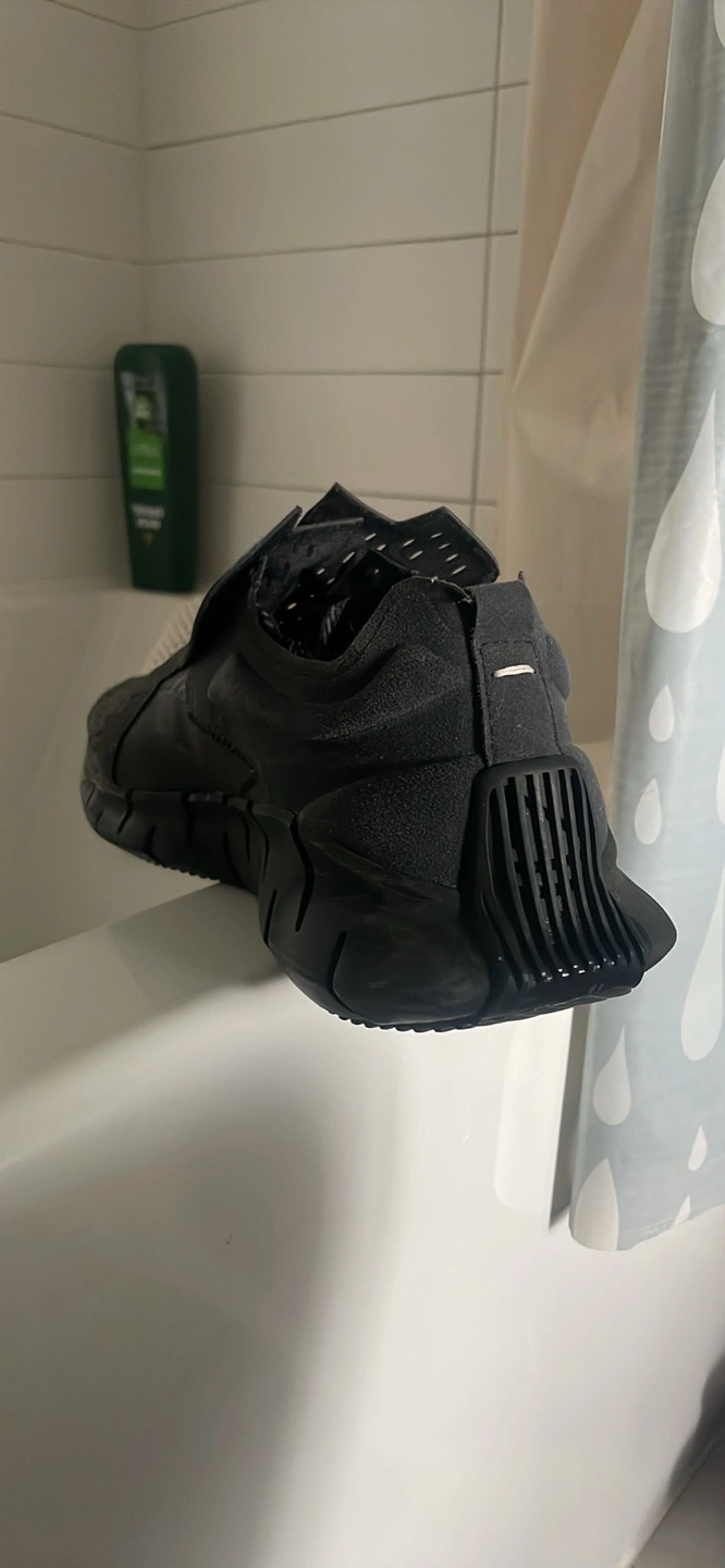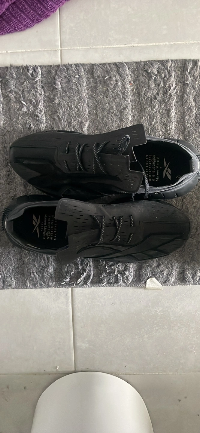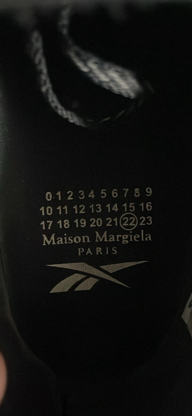 Selling a pair of Maison Margiela x Reebok sneakers in black. They're marked as size 12 on the insole.