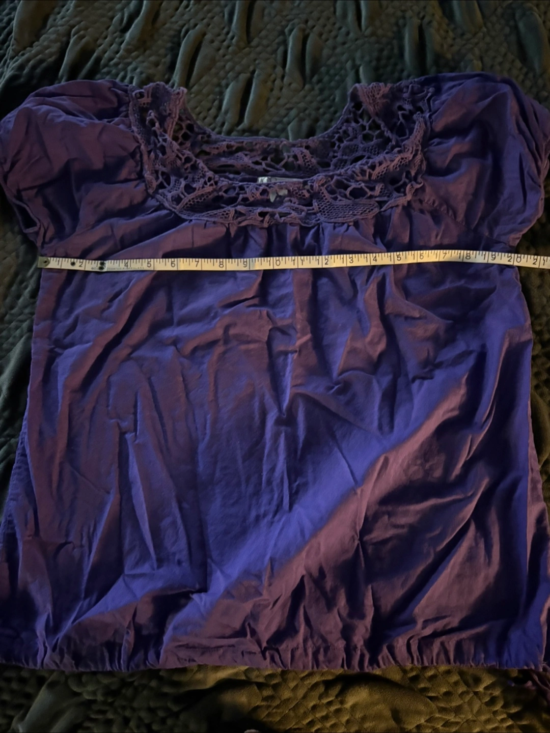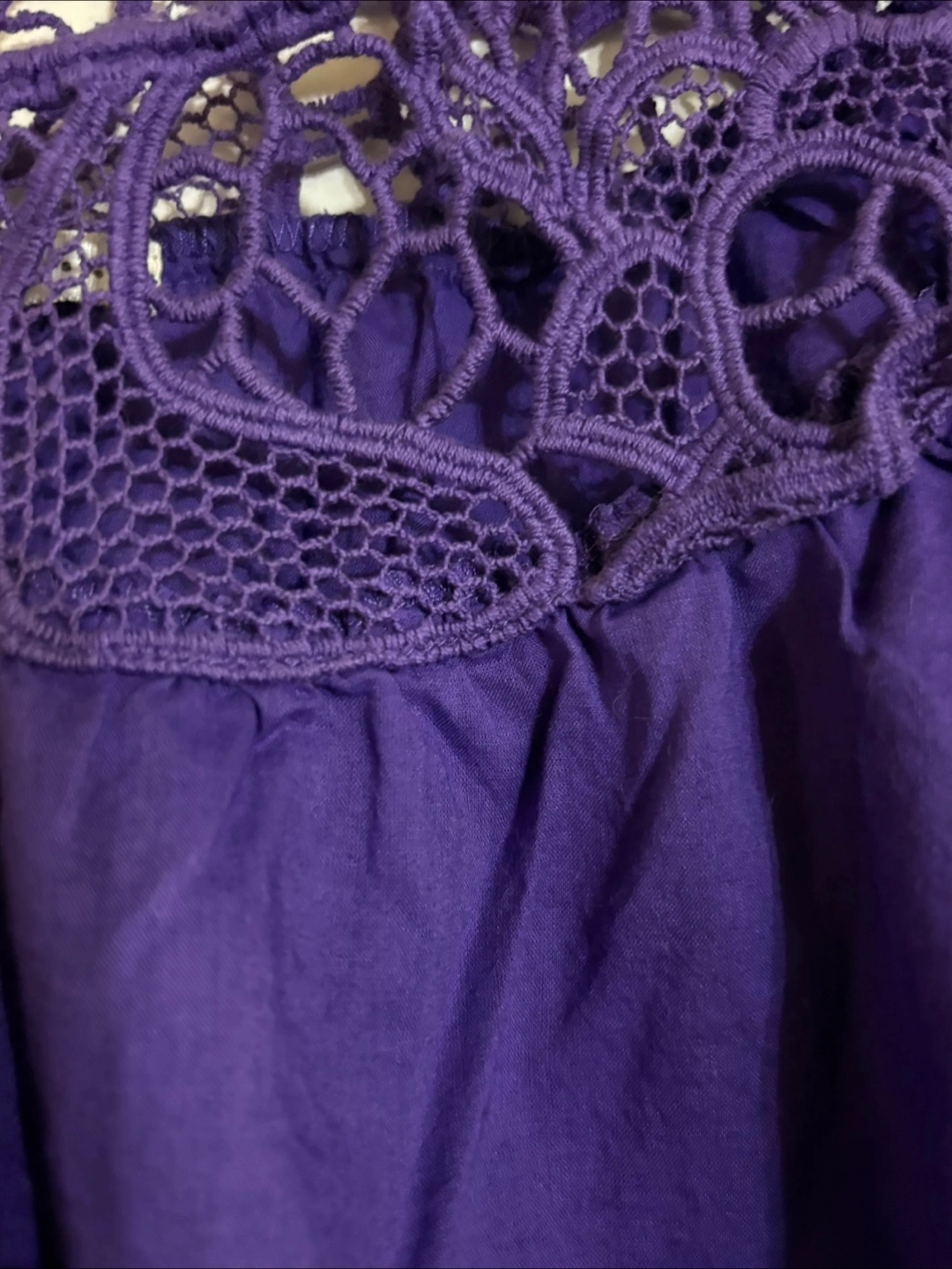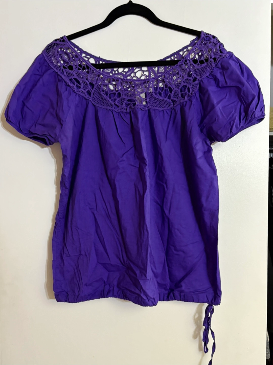 This Charlotte Russe top is a pretty purple colour, perfect for adding a pop of colour to your wardrobe! It features a crochet detail around the neckline and is made of 100% cotton. It's a size medium and in great condition!