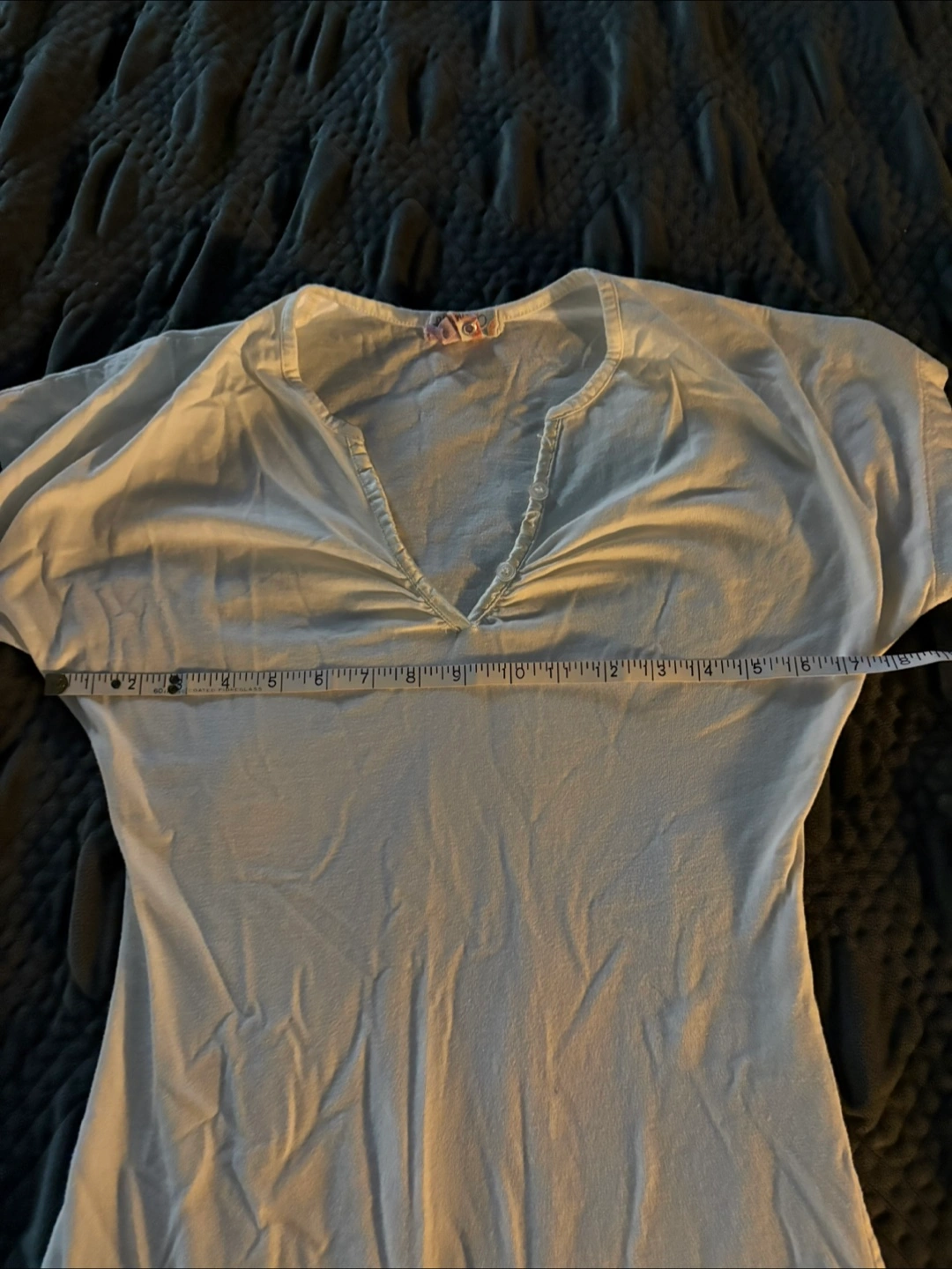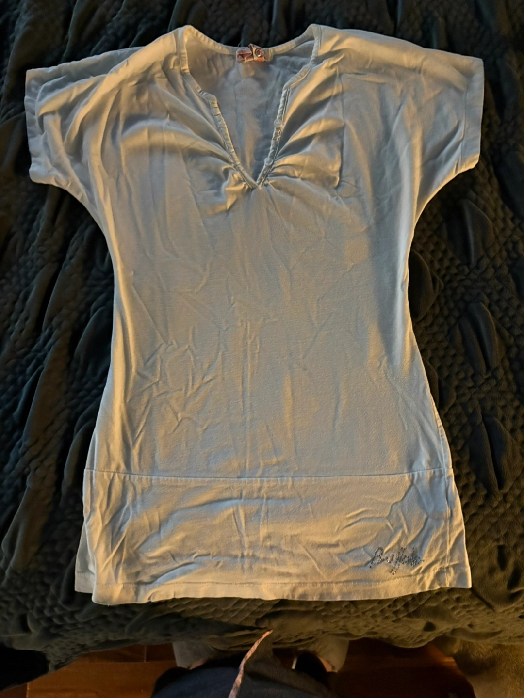 Here's a cute Buffalo tunic top in size medium! It's a light and breezy top, perfect for warmer weather. The material is soft and comfortable, and it has a stylish design with a V-neck and button details. It's in great condition and ready for a new home.