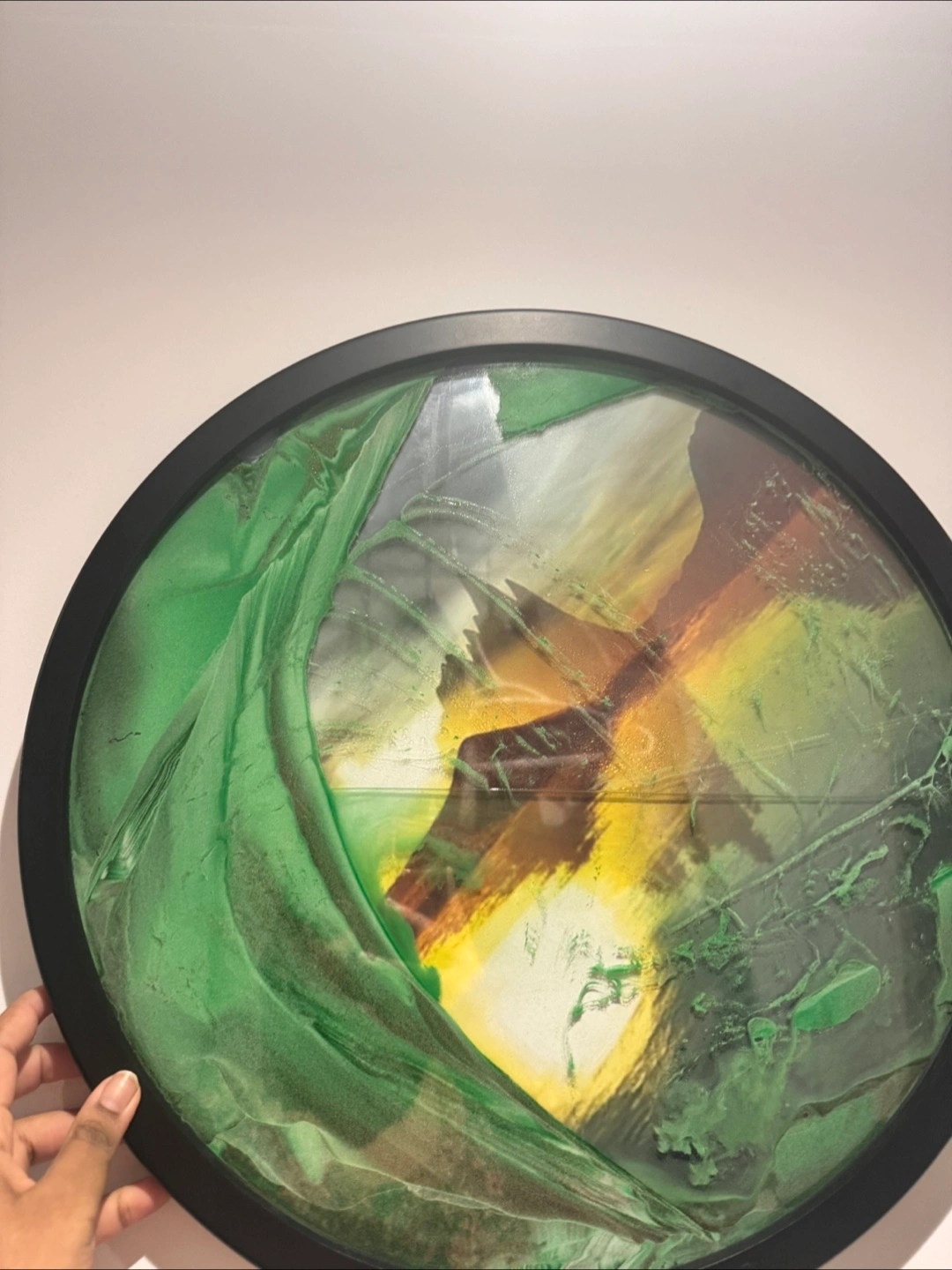 Circle water and sand abstract art eframe, perfect for adding a touch of creativity to your wall decor. Comes with mounting brackets
