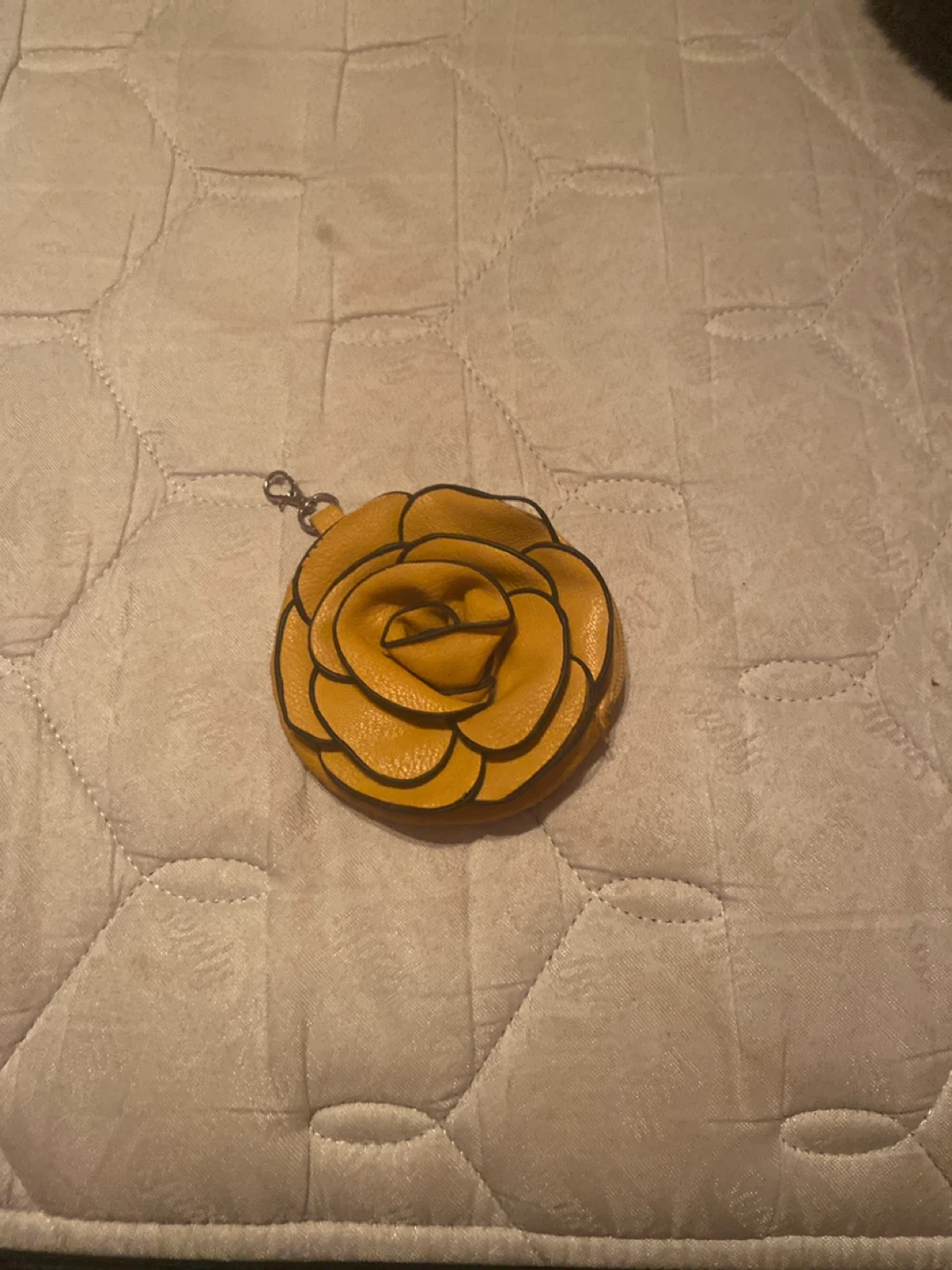 A cute yellow rose shaped coin purse! It's in great condition and ready for a new home. Perfect for keeping your change organized and adding a touch of floral charm to your everyday life