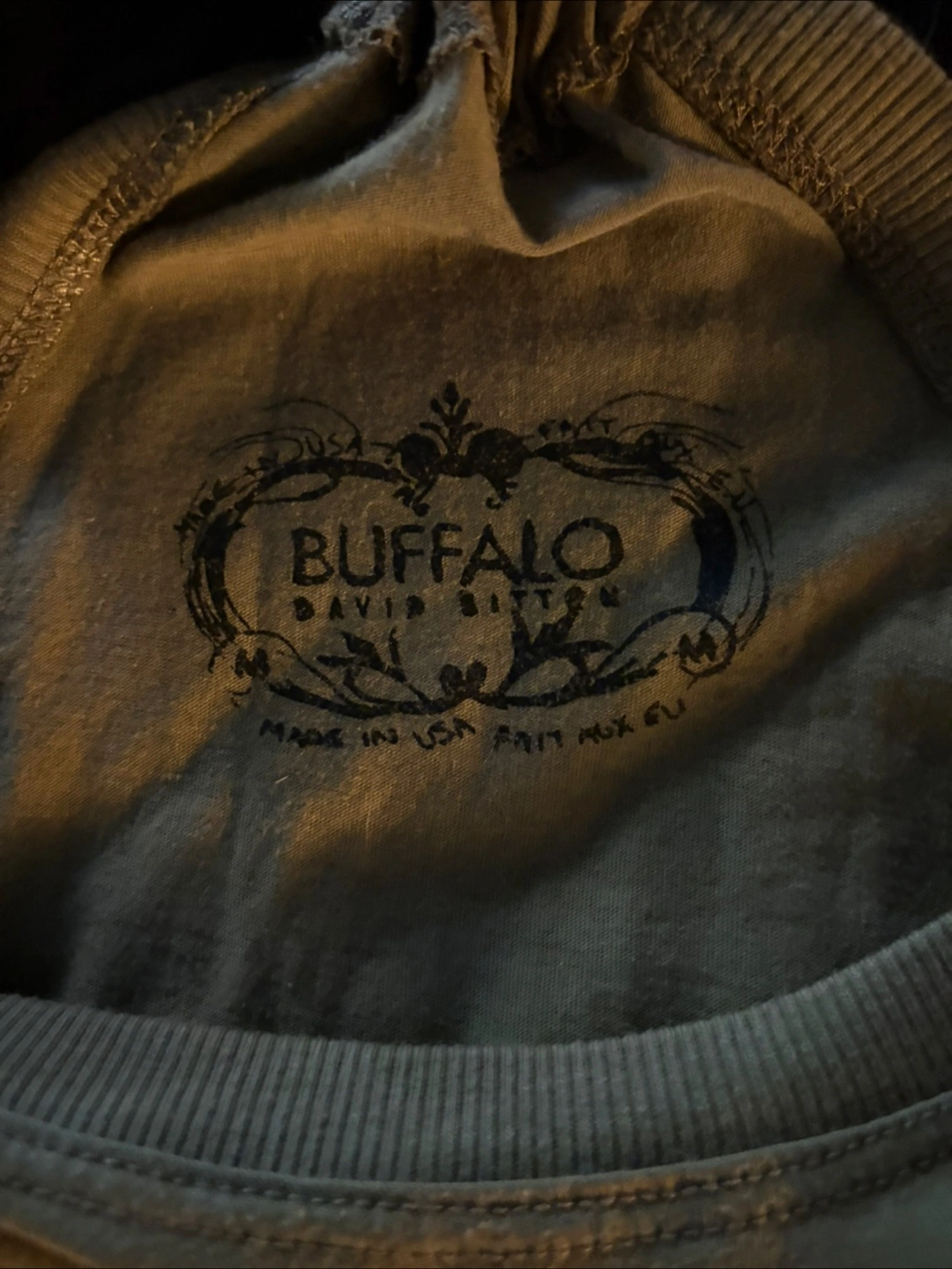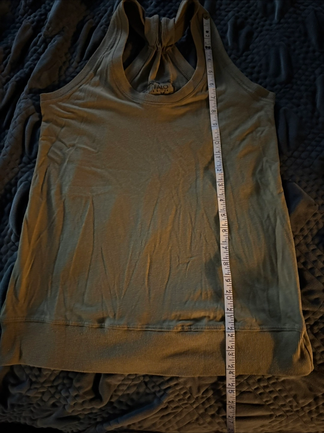 This is a Buffalo David Bitton tank top in olive green. It's a size M/M, the material is 50% polyester and 50% cotton. It measures about 17 inches across the front.