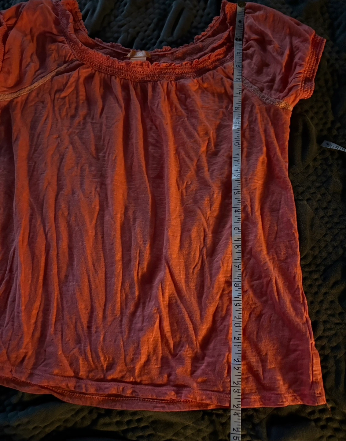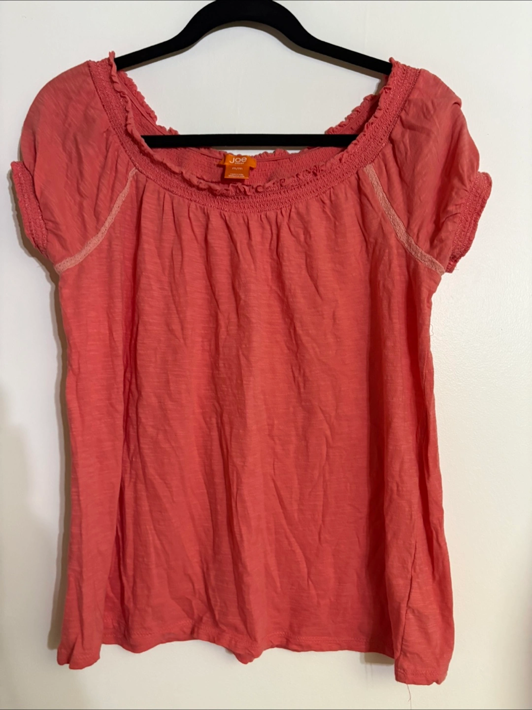 This is a coral coloured blouse from Joe Fresh in size medium. The material is 100% cotton. It's in great condition and ready for a new home!