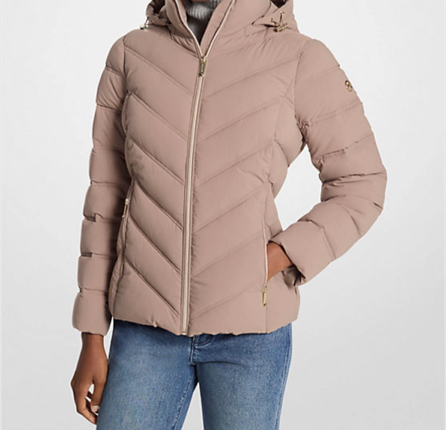 Here's a completely new Michael Kors puffer jacket in a lovely taupe colour! Size small. This stylish jacket is perfect for staying warm and looking chic during the colder months. Original prize $295 CAD!