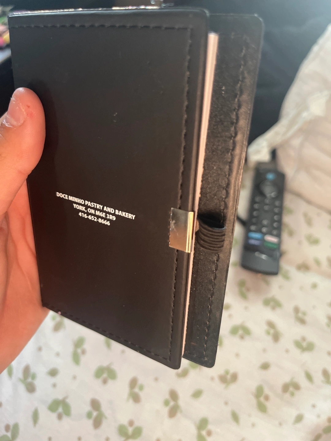 Selling a notebook from Doce Minho Pastry and Bakery in York! It's a handy little notebook with a black cover. Inside, there are sticky notes in various colours and some blank pages for jotting down notes, even had a pen holder on the side