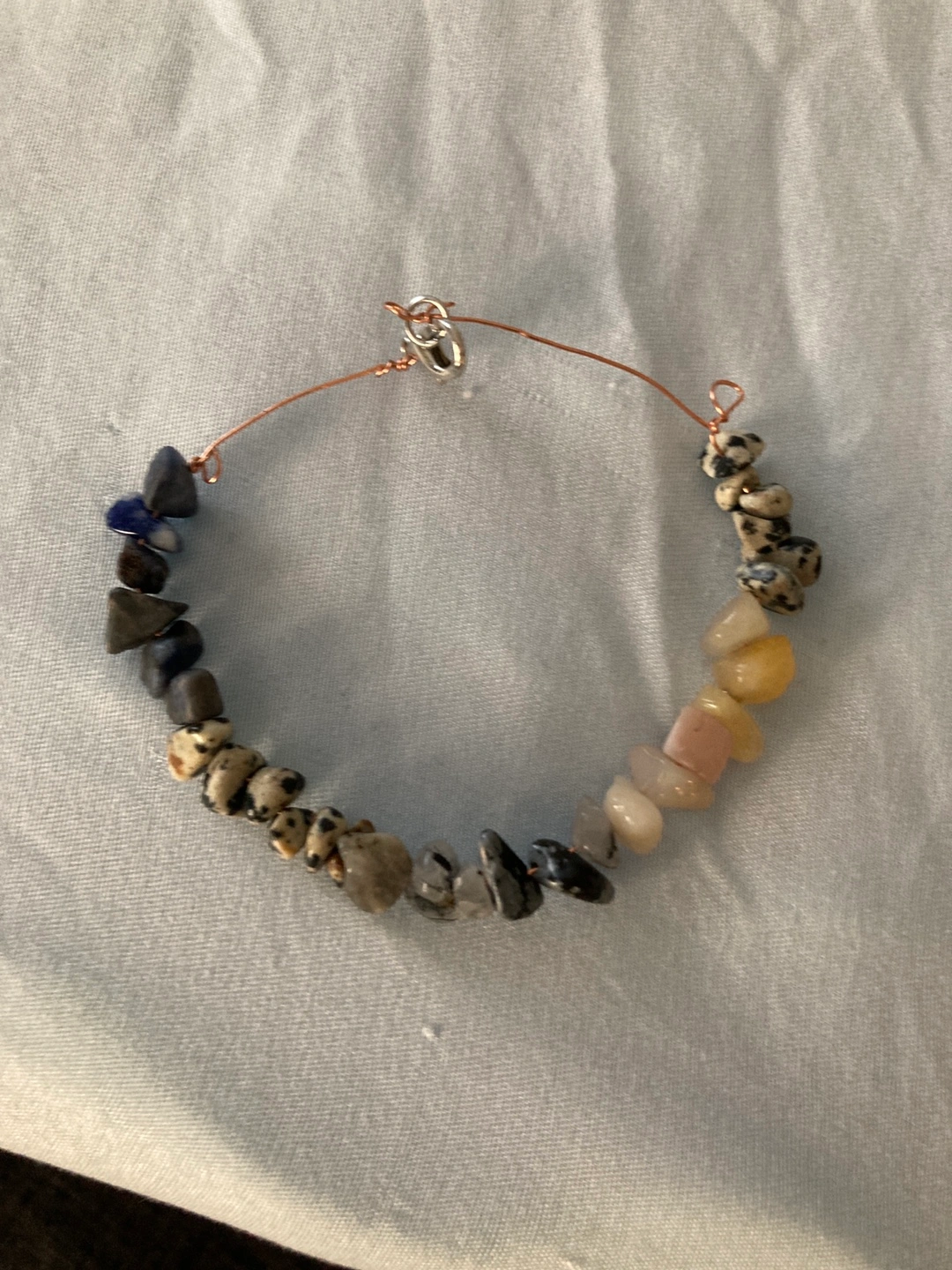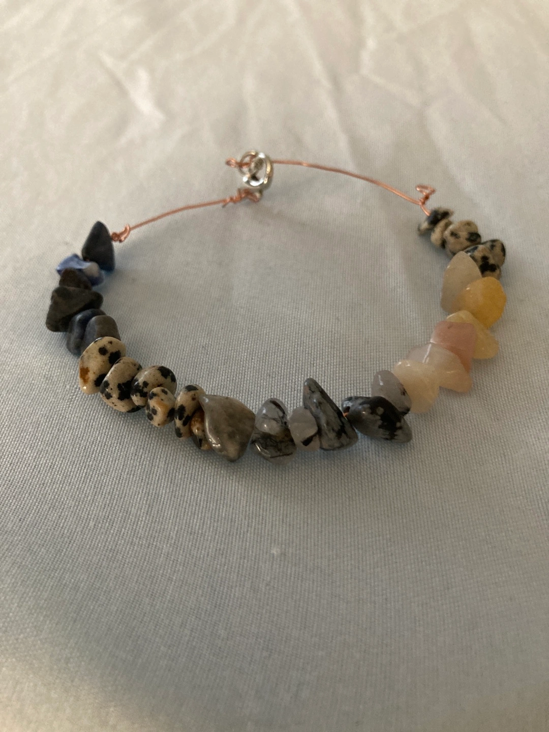 Selling a unique handmade bracelet featuring various natural stones. It's a lovely piece to add a touch of earthy elegance to your style. The bracelet is in great condition and ready for a new home!