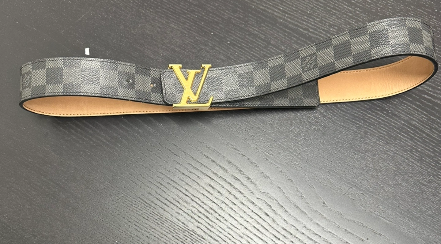 Selling a Louis Vuitton belt with the Damier Infini pattern. It features a gold-tone LV buckle. This stylish accessory is perfect for adding a touch of luxury to any outfit!