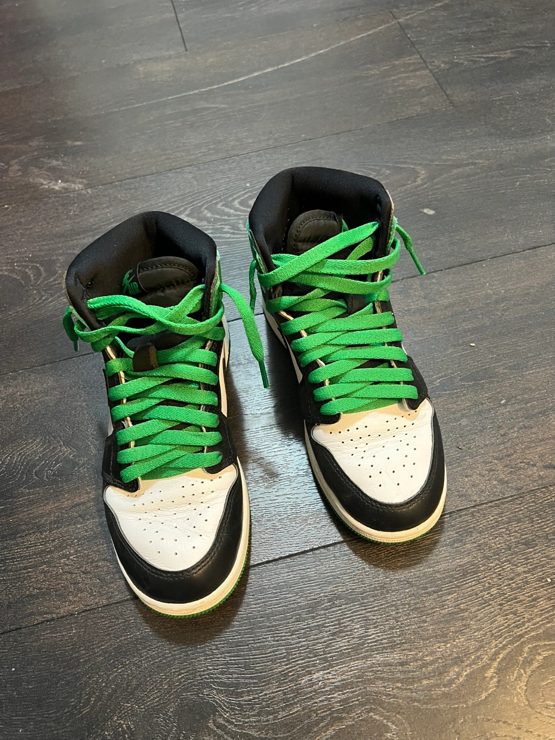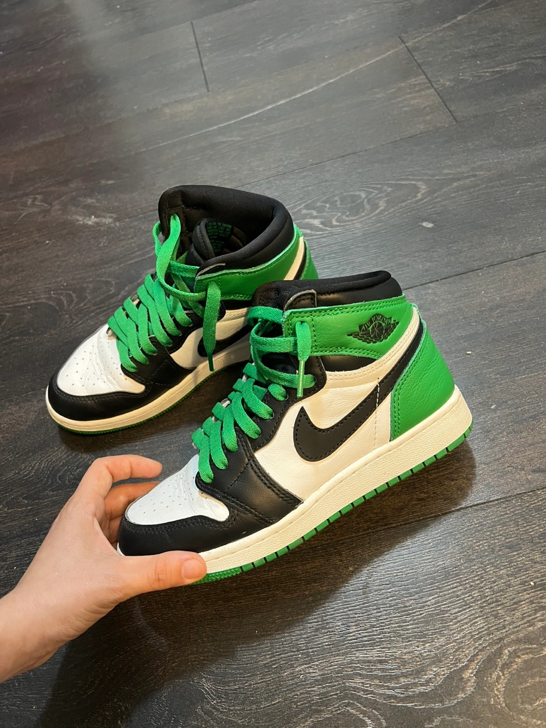 Selling a pair of Air Jordan 1 in the Lucky Green colourway! They're in great condition, ready for a new home. These are a stylish and comfortable choice for everyday wear.