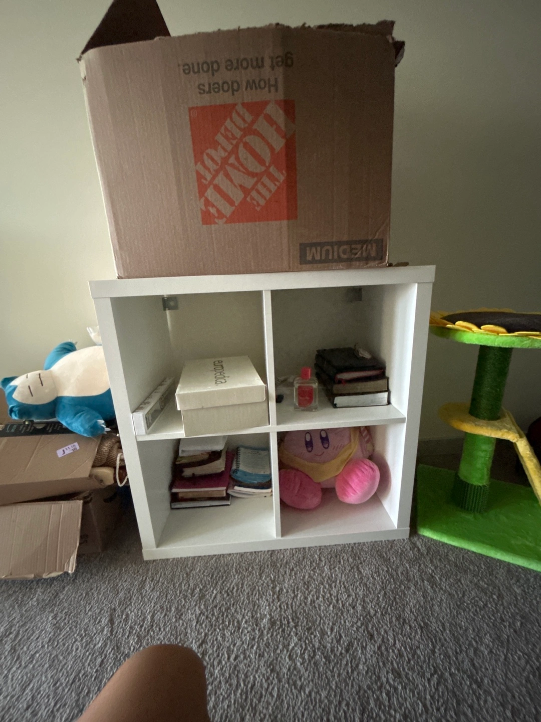 Selling a handy white cube storage shelf! It's in great shape and perfect for organizing books, toys, or anything else you need to keep tidy. It has 4 cubes for storage