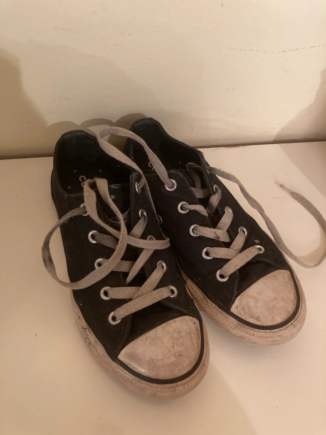 Selling a pair of Converse All Star sneakers in black! They're a youth size 1 in US sizing. These classic sneakers are perfect for everyday wear. They show some signs of wear, (just need to clean!)but still have lots of life left in them