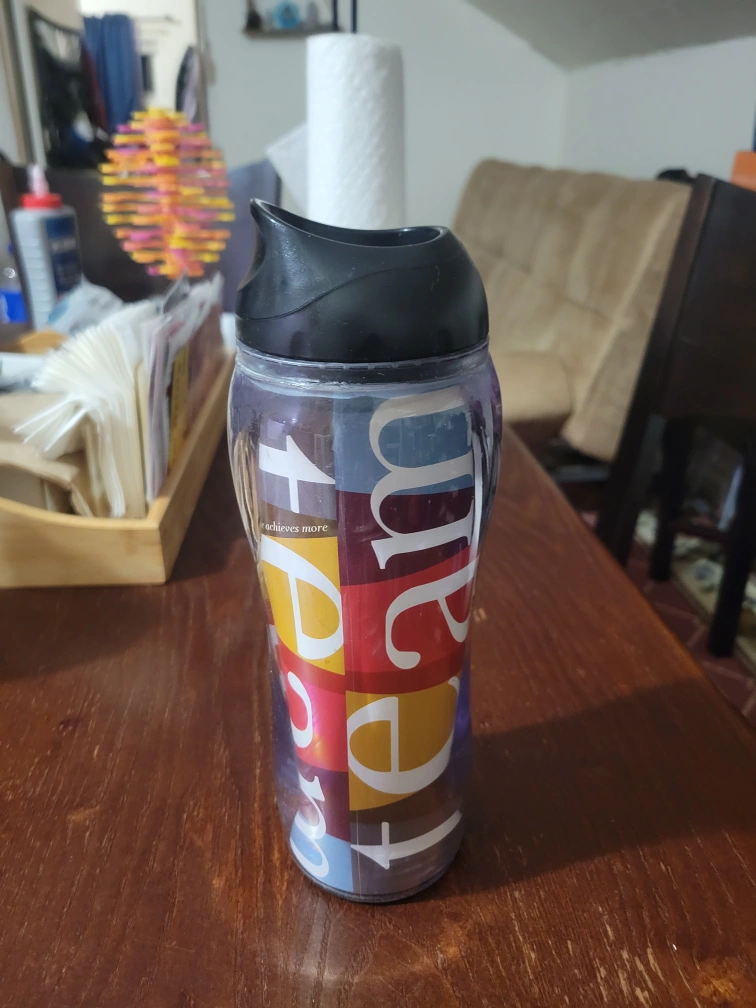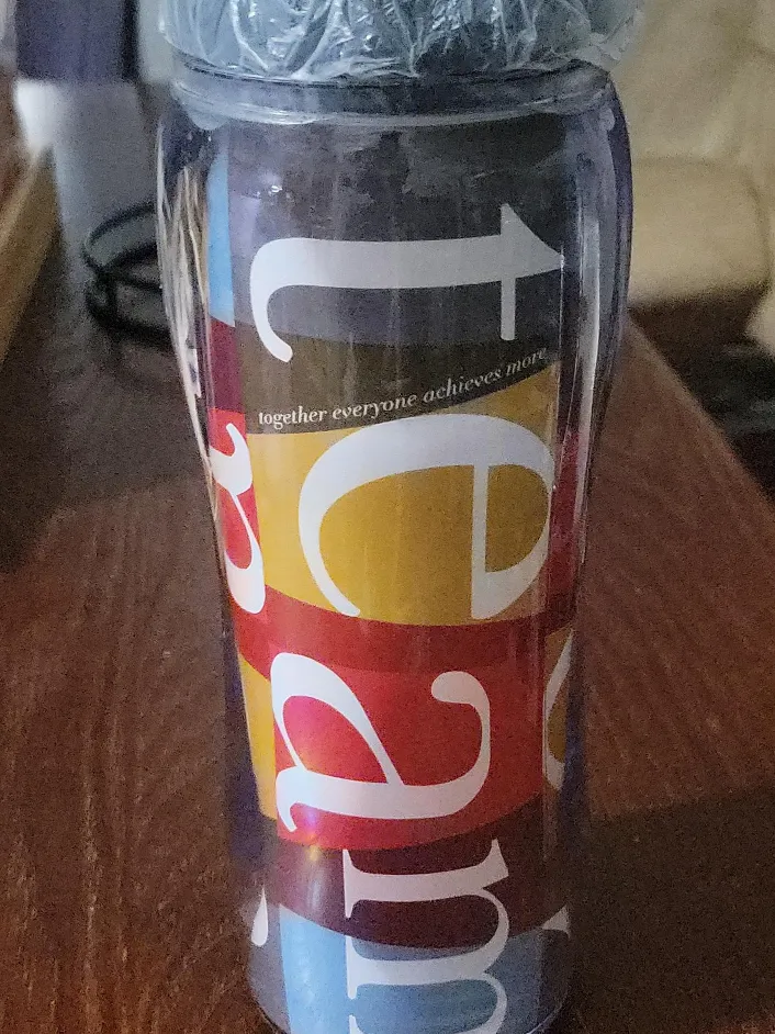 Selling a tumbler that says 'Team Together Everyone Achieves More'! It's in great condition and ready for a new home. Perfect for staying hydrated on the go. Holds 16oz. and was damaged and fixed with glue.