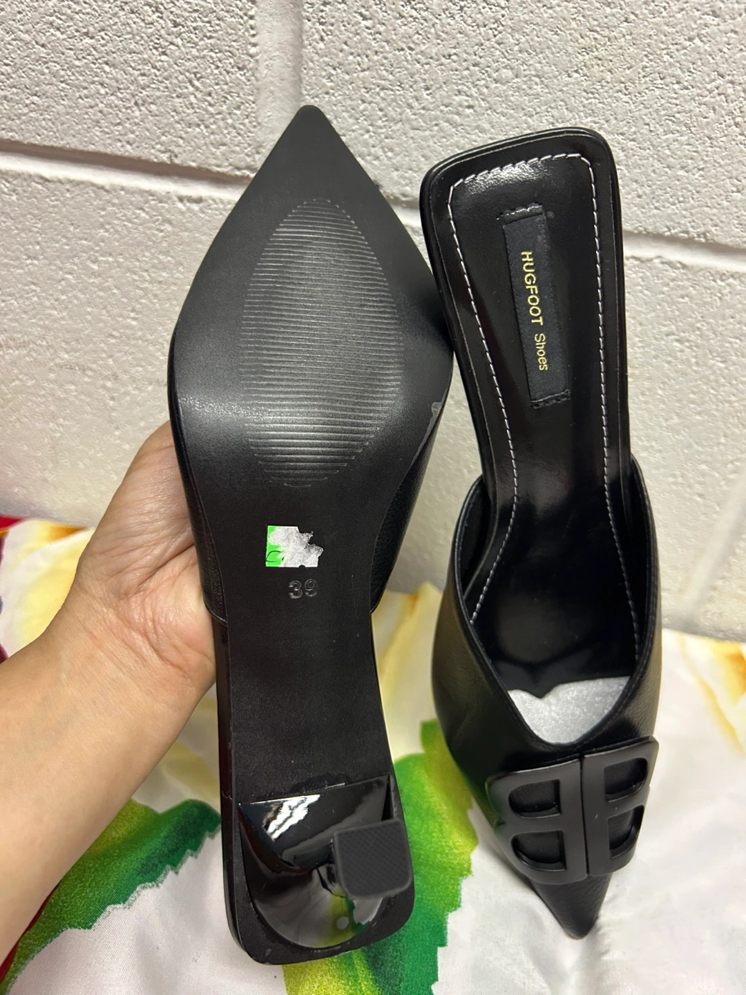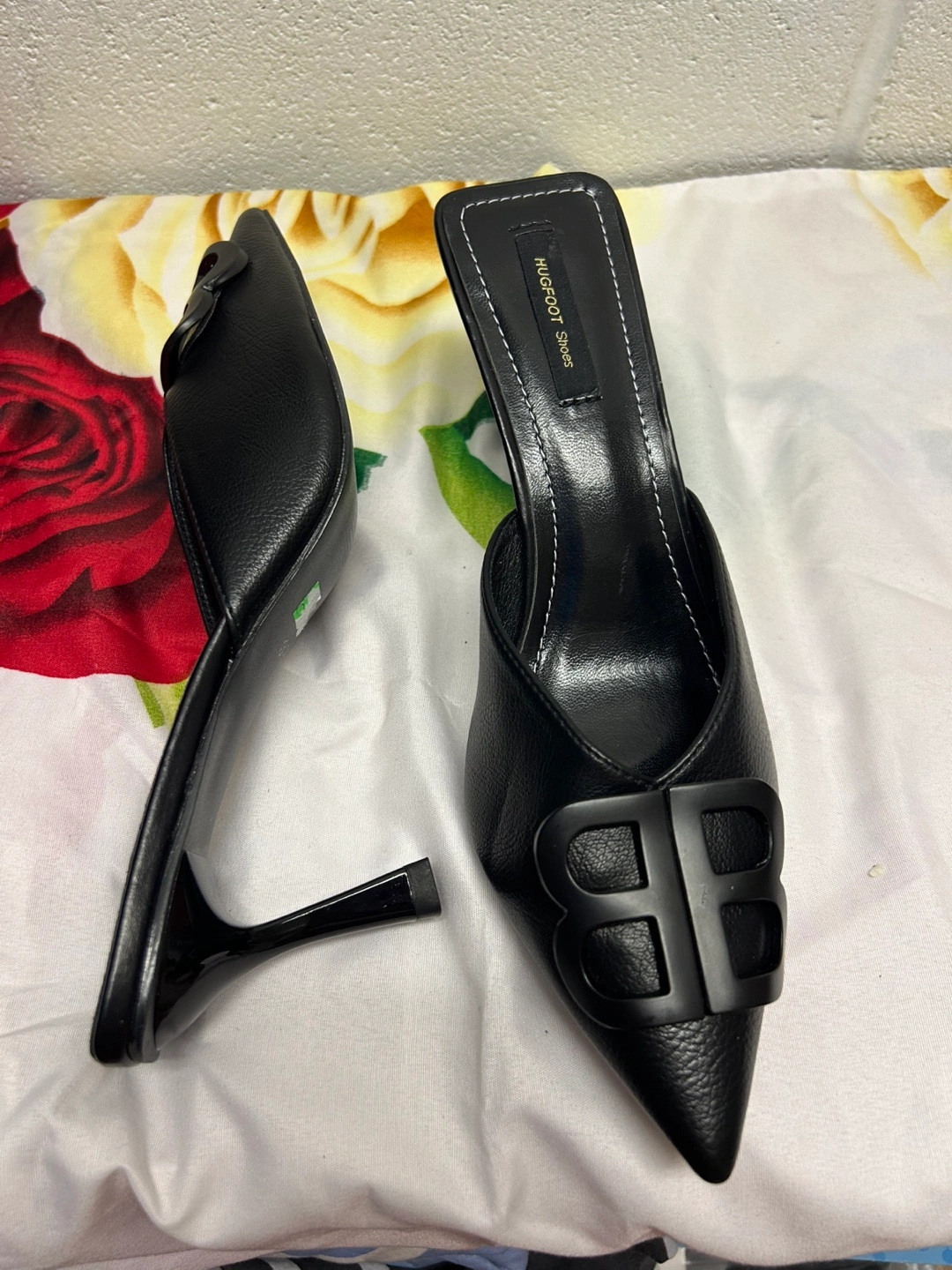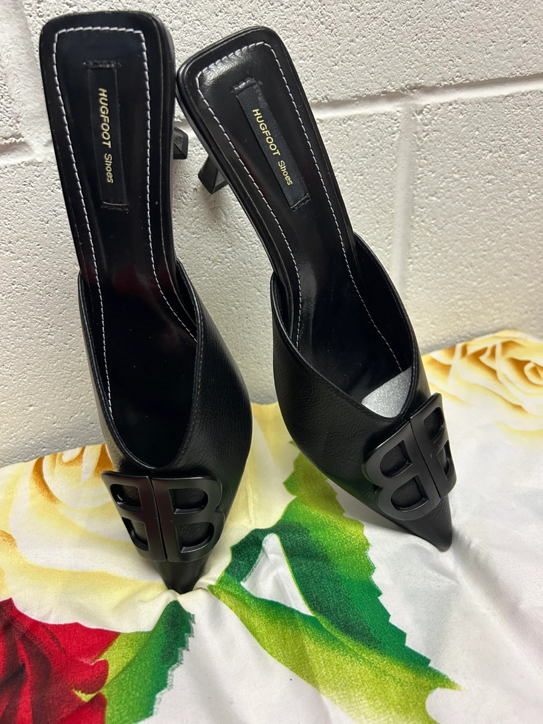 These are a pair of stylish black mules from HUGFOOT Shoes. They are in great condition and size 38!