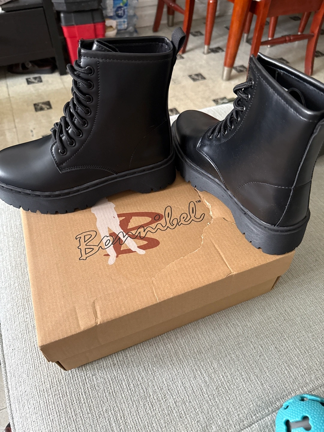 Selling a pair of Bambibel black ankle boots. They are new and come with the original box. These boots are stylish and perfect for everyday wear!