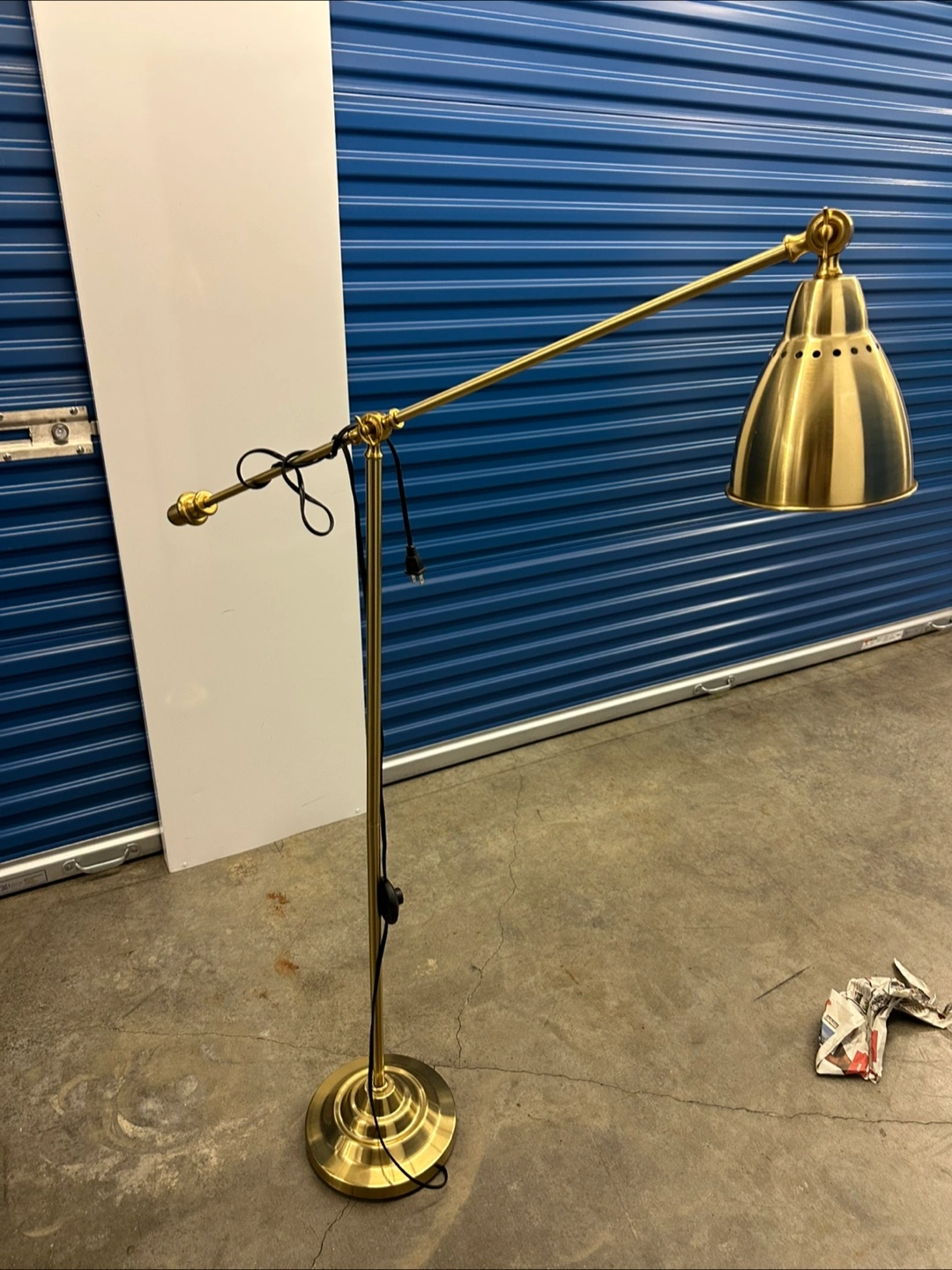 Here's a floor lamp with a nice brass finish! It has an adjustable arm so you can direct the light where you need it. Perfect for reading or adding some warm light to a room