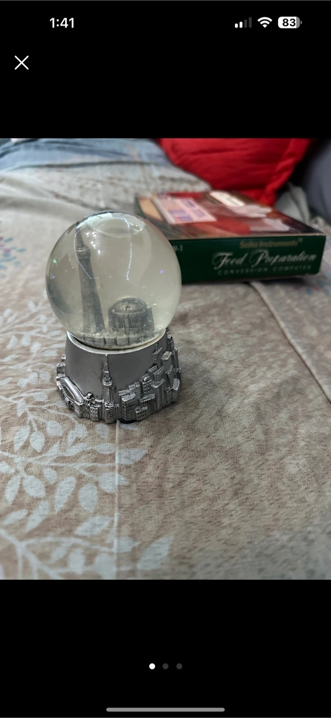 248Selling a charming snow globe featuring a detailed cityscape base. It's in great shape and would make a lovely addition to any collection or a unique decorative piece for your home offer