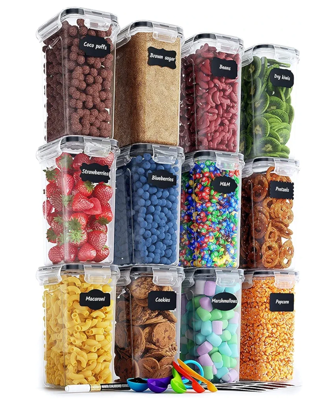 Keep your pantry organized with this Chef's Path food storage container set! The containers are airtight, watertight, and leak-proof, ensuring your food stays fresh. They're also dishwasher and freezer safe, and microwave safe (remove lid).