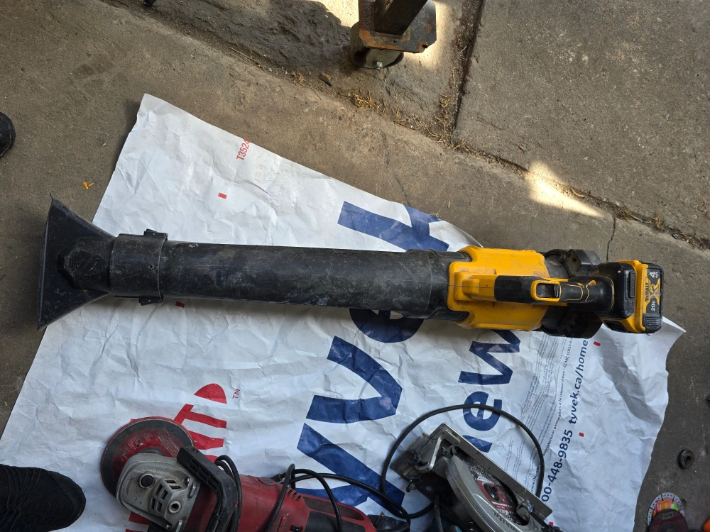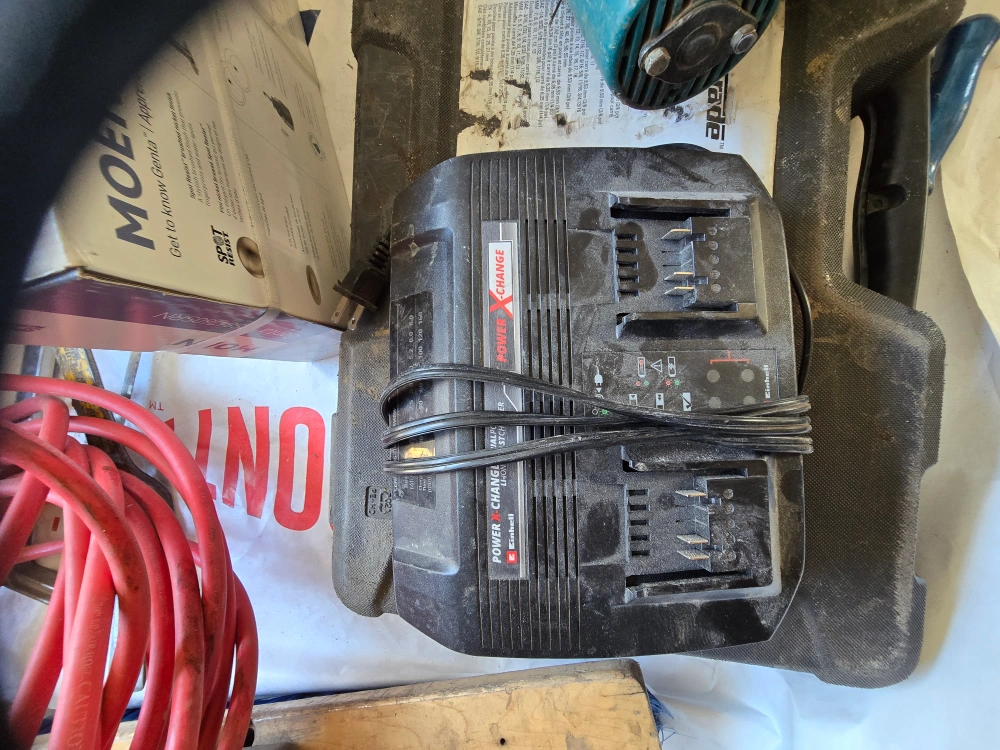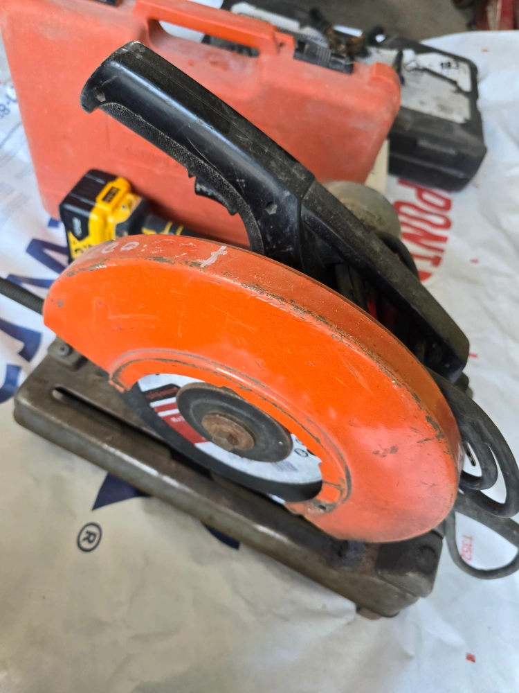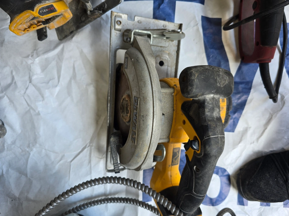 Selling a variety of used power tools. Includes a DeWalt saw, a Stihl saw, and an air compressor. All tools show signs of wear and use. Please see photos for details!