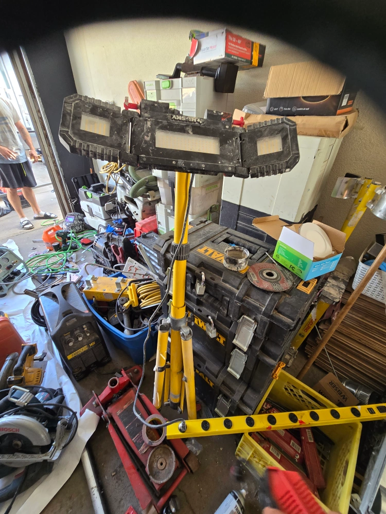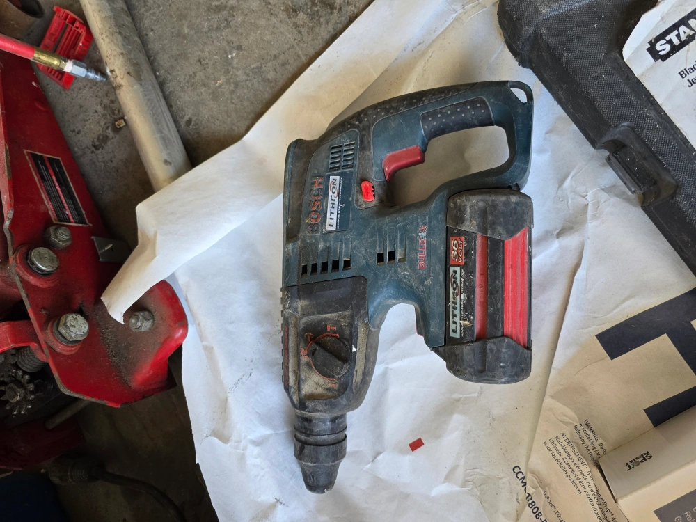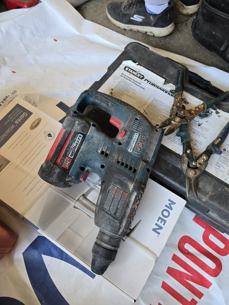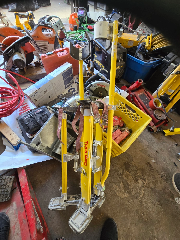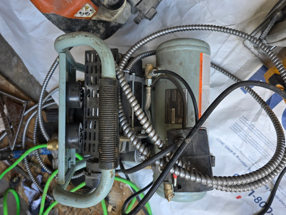 Selling a variety of used power tools. Includes a DeWalt saw, a Stihl saw, and an air compressor. All tools show signs of wear and use. Please see photos for details!