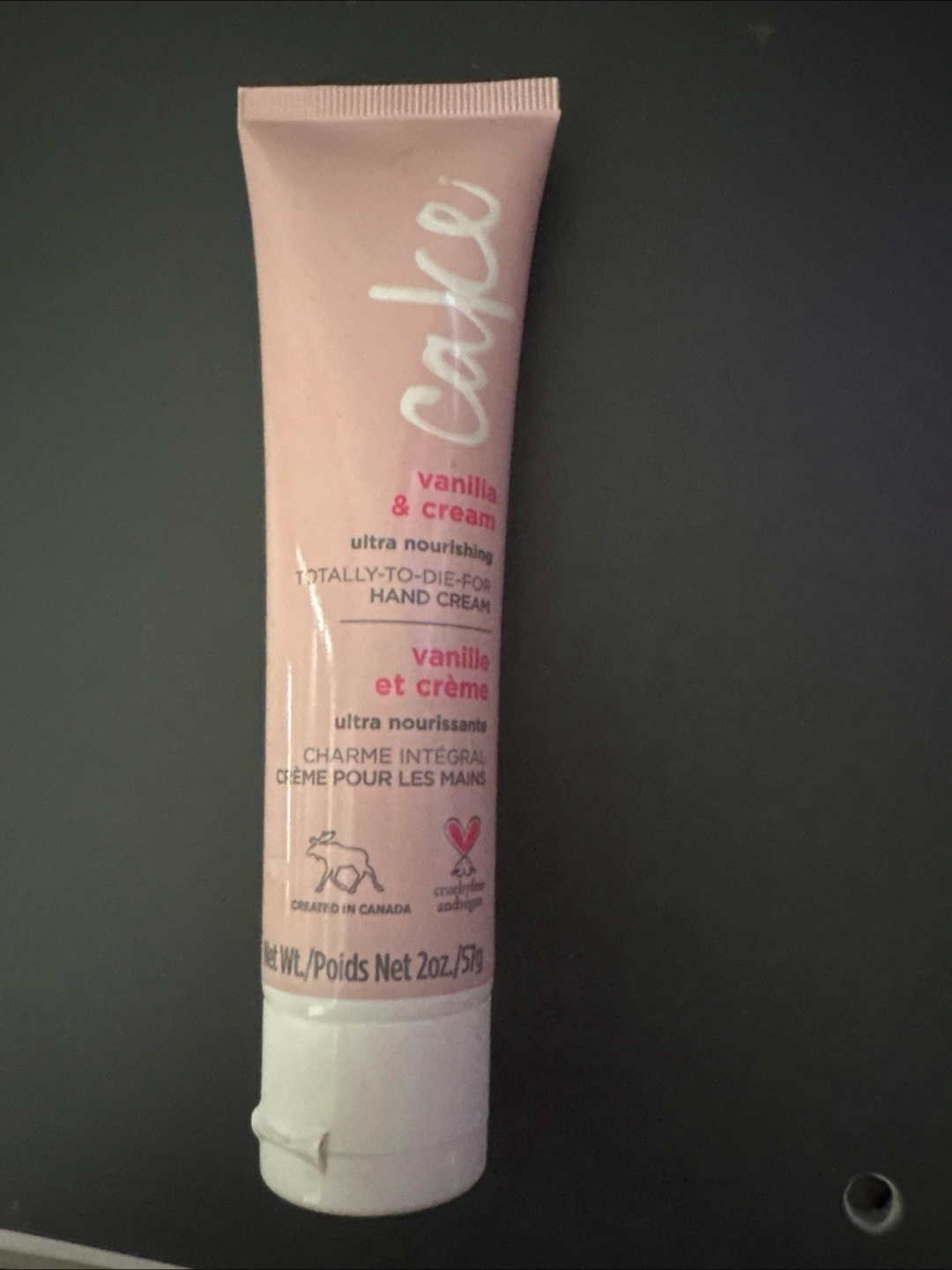 83Selling a tube of Cake Vanilla & Cream ultra-nourishing hand cream. It's a totally-to-die-for hand cream that's made right here in Canada! Net weight is 2oz/57g