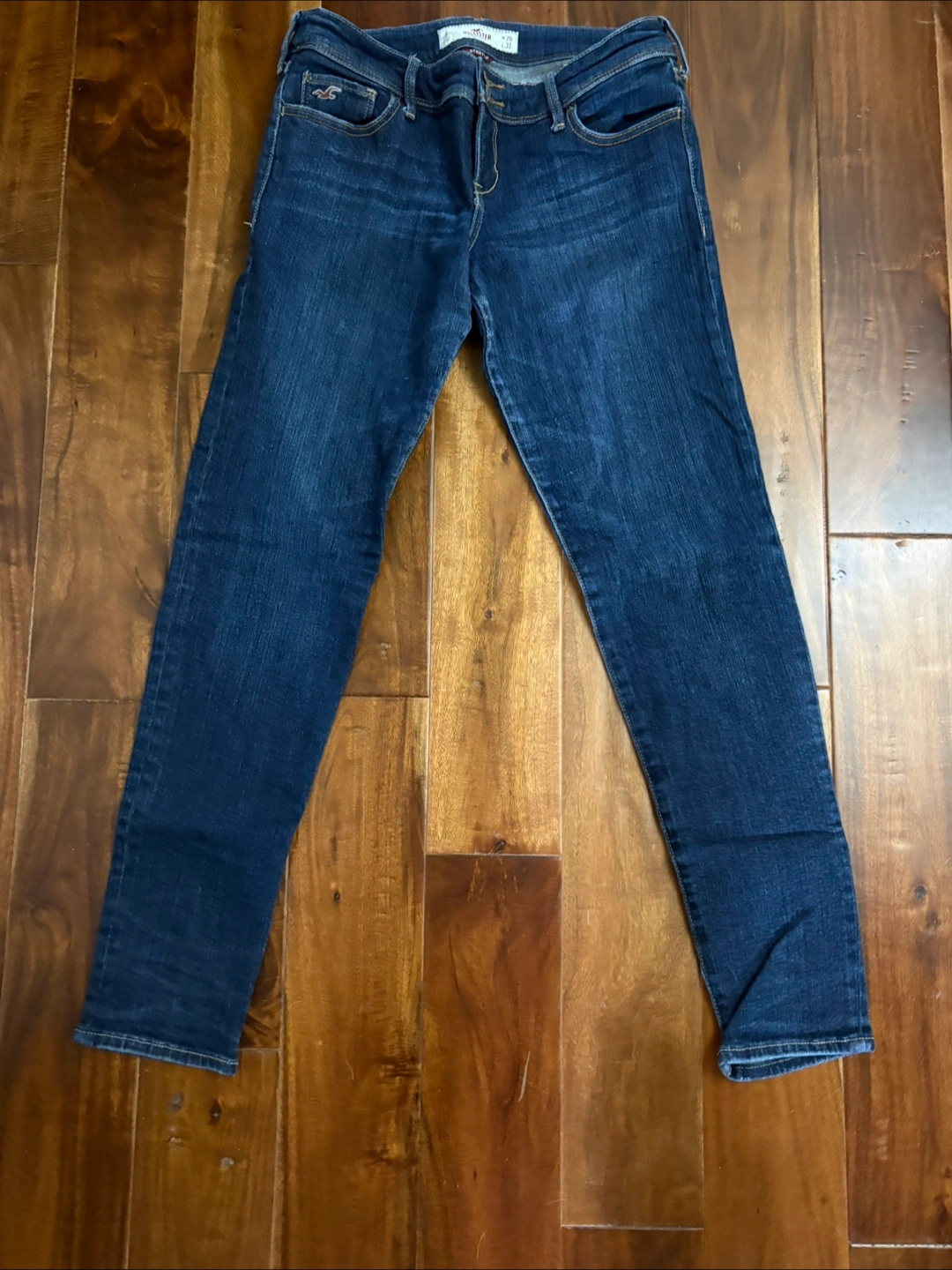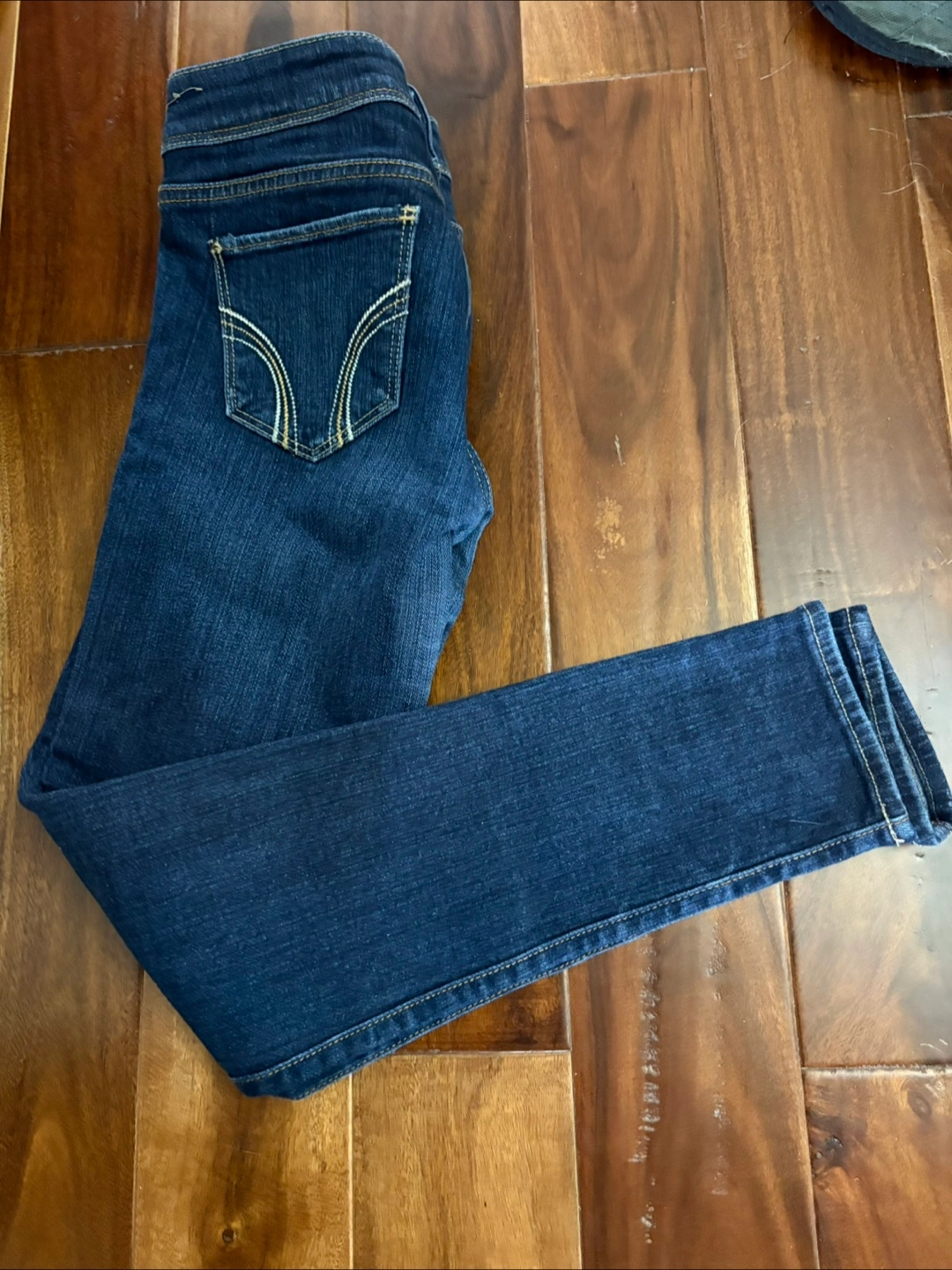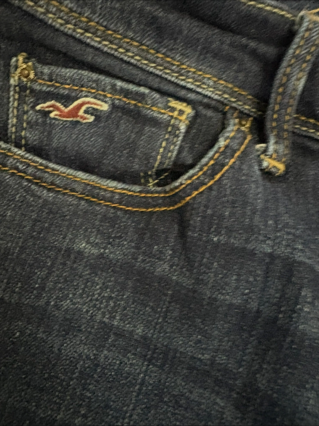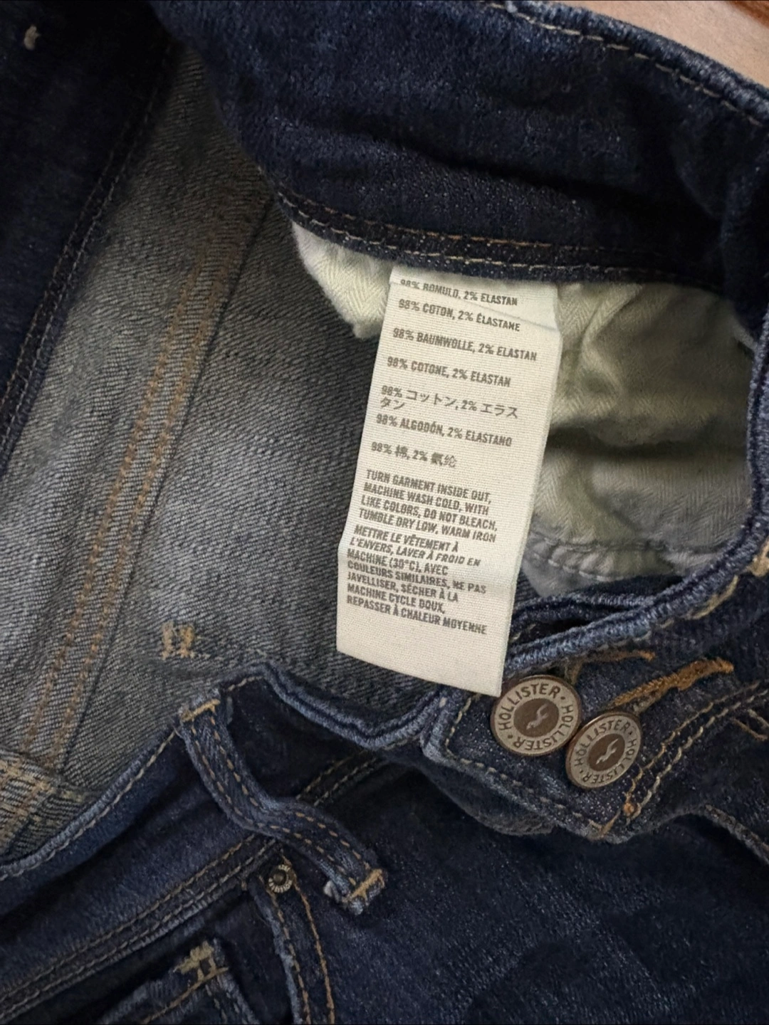 Selling a pair of Hollister dark wash jeans in size 29/31. They are in great condition and made of 98% cotton and 2% elastane, offering a comfortable stretch. Perfect for everyday wear!