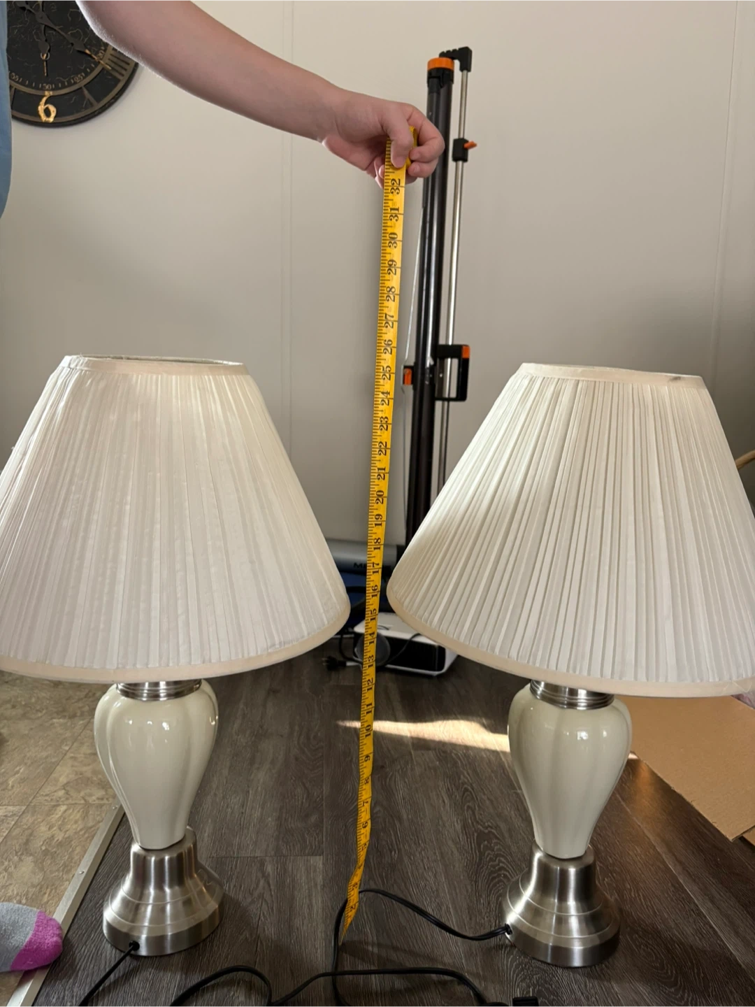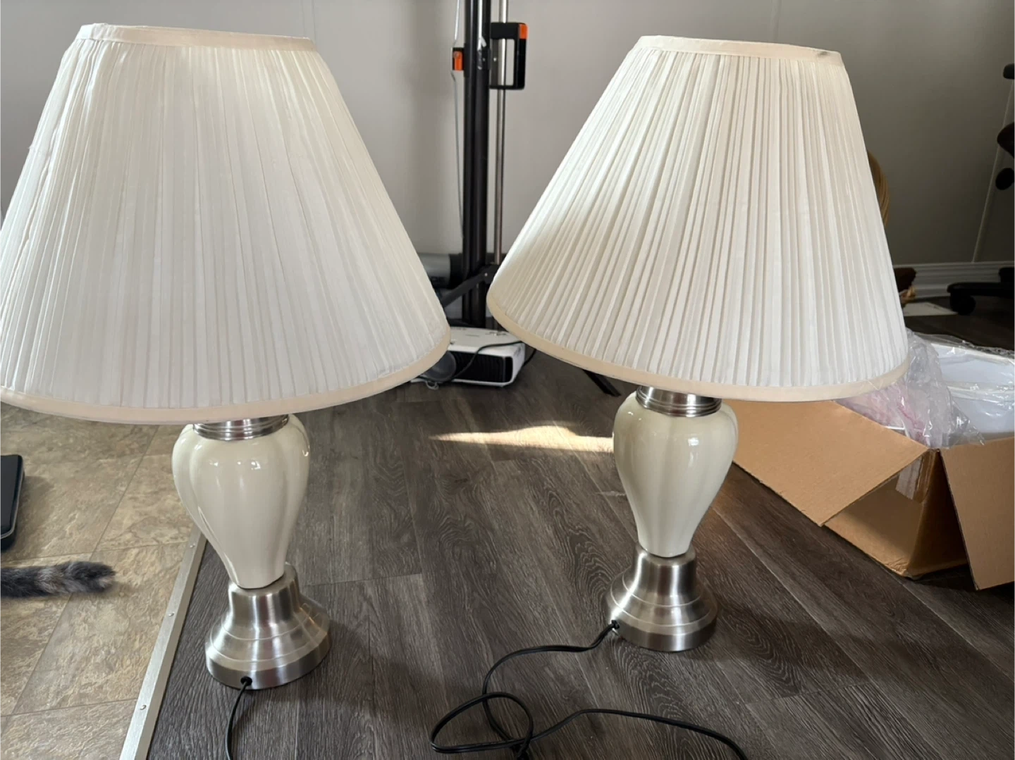 Selling a pair of lovely cream-coloured table lamps! They would look great in a living room or bedroom. They're in good condition and ready to brighten up your space. Each lamp is about 26 inches tall. Price is per unit. Exact change or e-transfer please. Pick up only , DM for address