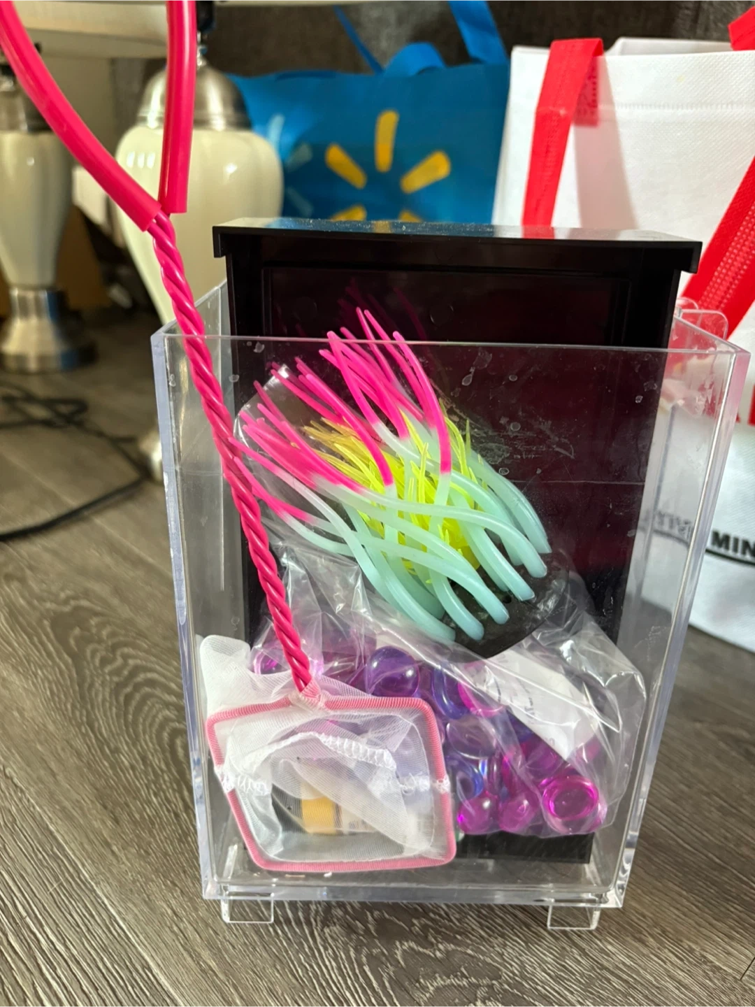 Selling a complete aquarium starter kit. It includes a clear tank, decorative plants, colourful stones, and a net. Perfect for setting up a small freshwater aquarium! Exact change please. Pick up only, DM for address