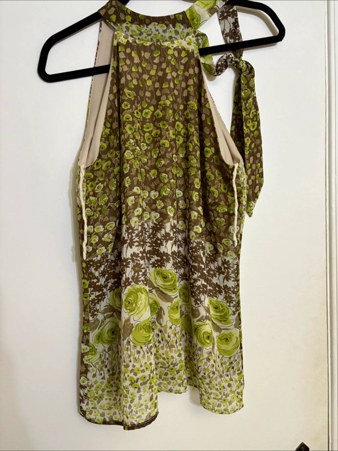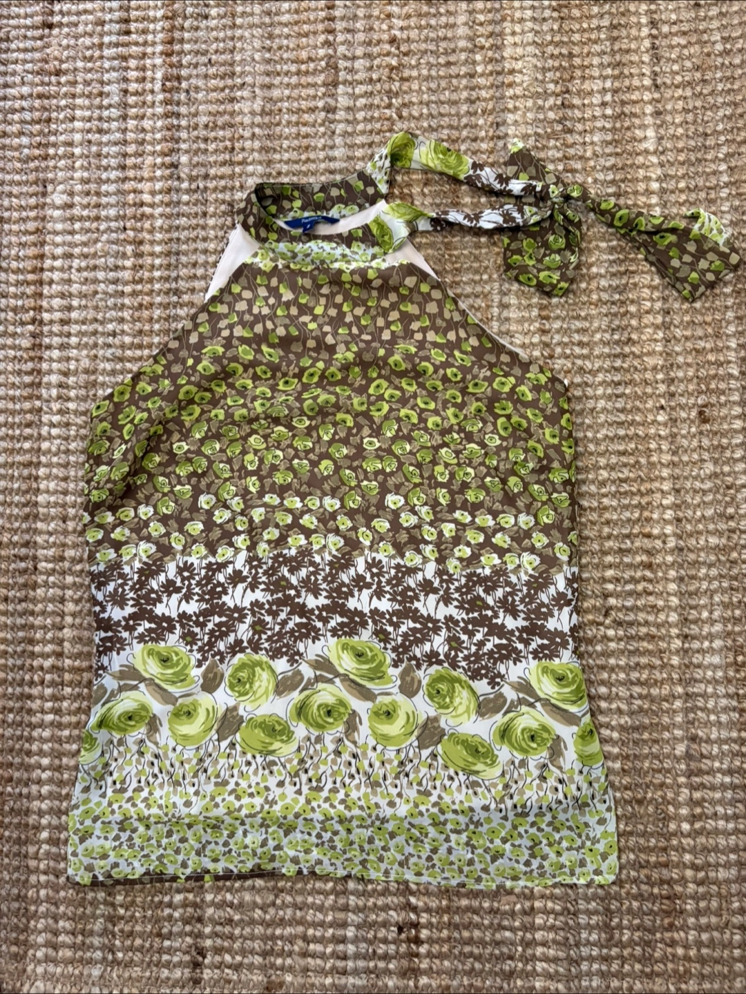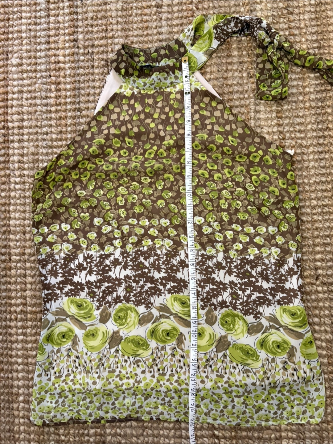 This Reitmans halter top is a stylish addition to any wardrobe! It features a beautiful floral pattern in shades of green and brown. The size is M, perfect for a comfortable and flattering fit.