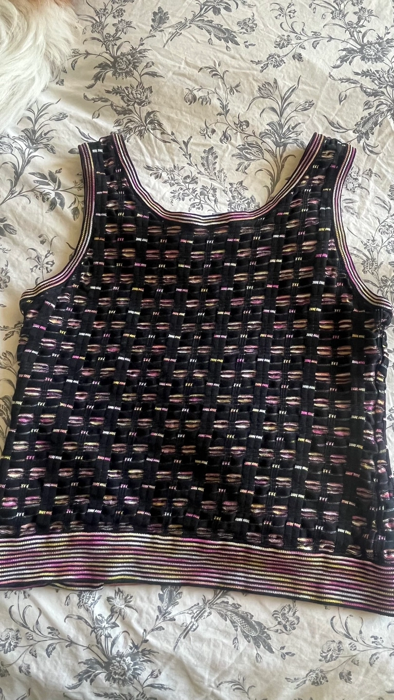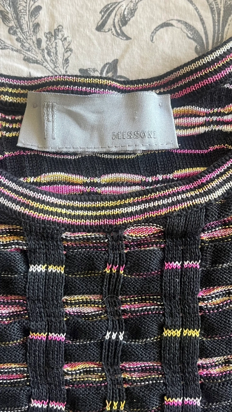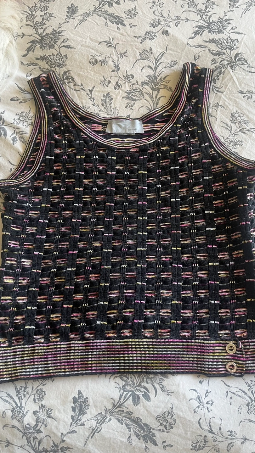 This is a beautiful knit tank top from Missoni. It features a unique pattern and stylish design, perfect for adding a touch of elegance to any outfit!