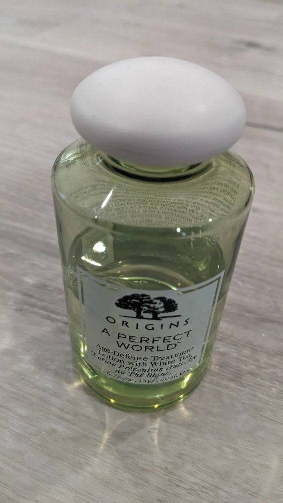 Origins A Perfect World Age-Defense Treatment Lotion with White Tea. It's a lotion that helps with anti-aging. Bottle contains 150ml (5 fl.oz.)