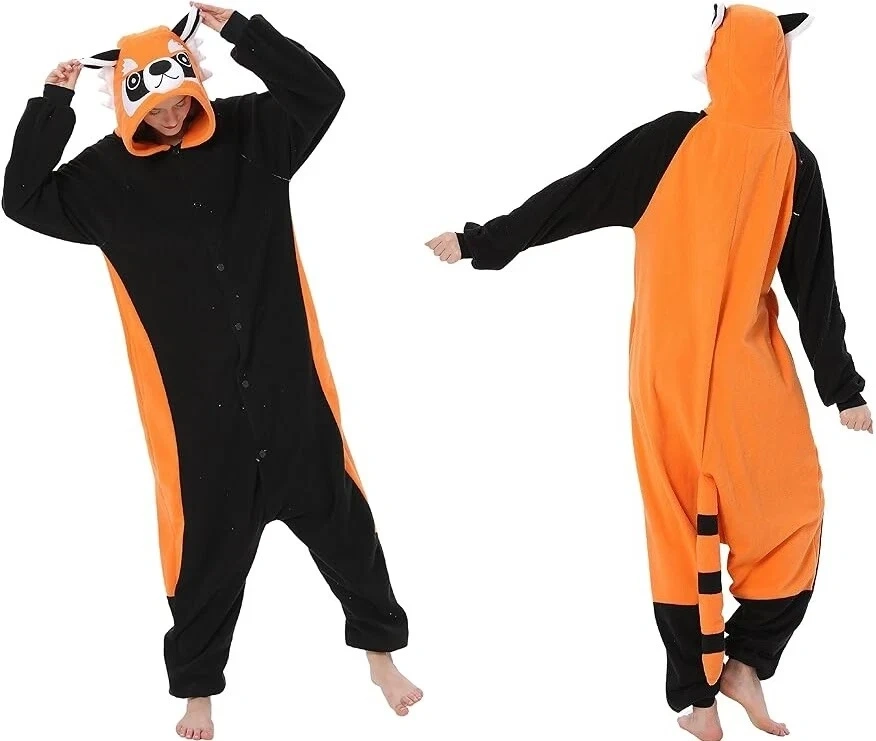 Red Panda kigurumi onesie, soft and cozy with hood, tail, and button-up front. Fun for lounging, cosplay, parties, or as pajamas. Never worn, excellent condition.