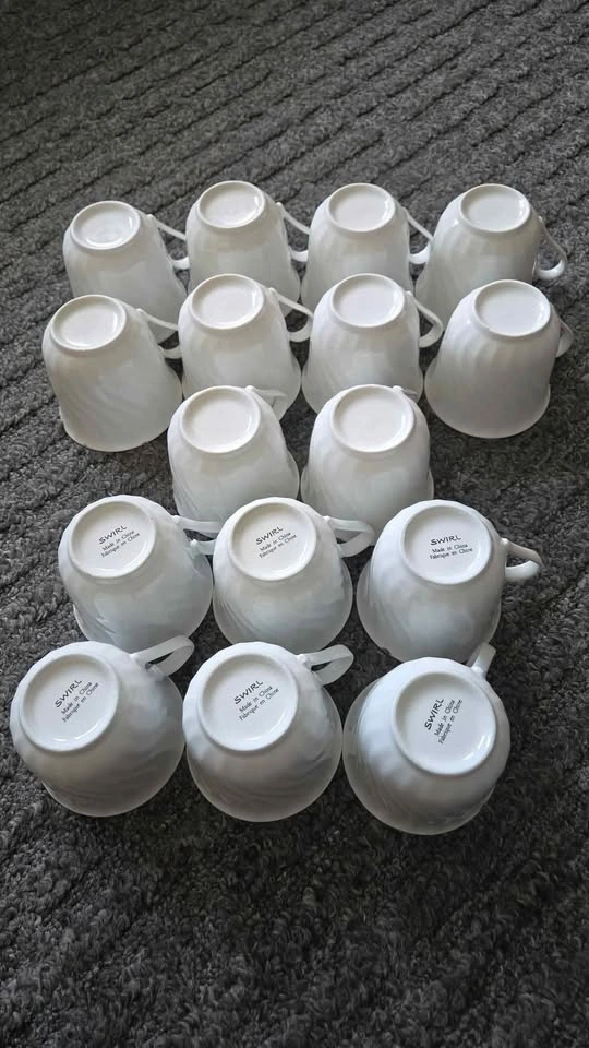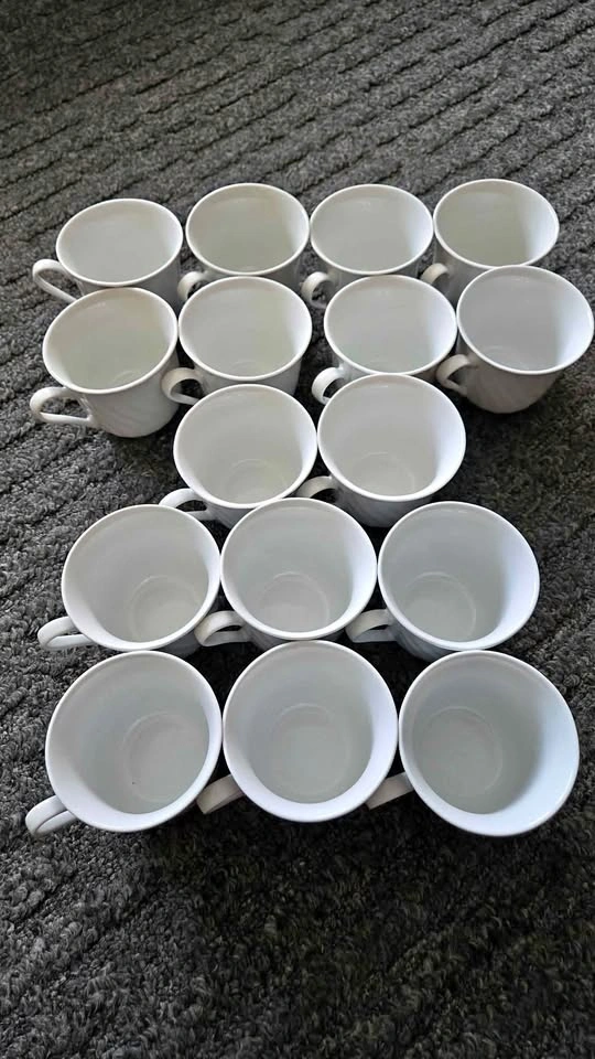 16 pcs white cups. Measurement on photo uploaded. No chip, crack or discolorations.