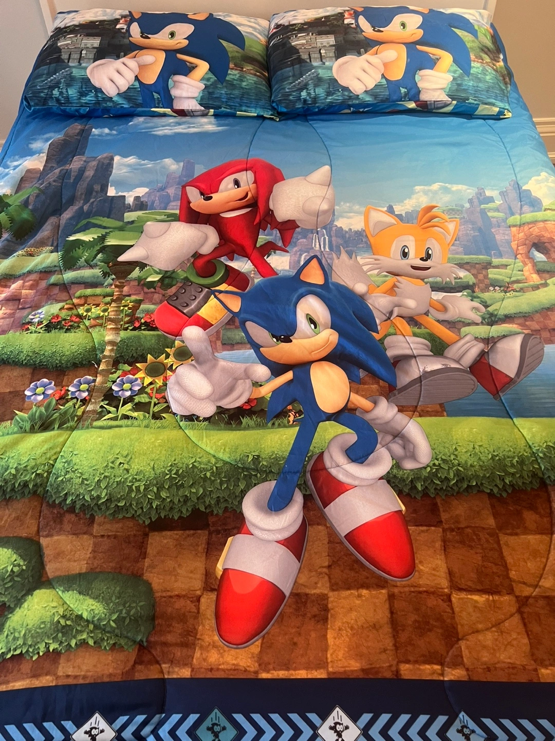 238Selling a Sonic the Hedgehog comforter set! It features Sonic, Tails, and Knuckles. Perfect for a kid's room or any Sonic fan!