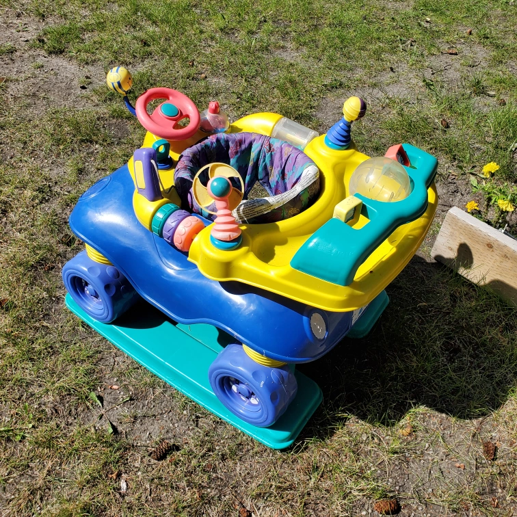I'm selling a baby bouncer in fair condition. It's a fun and safe way for your little one to explore, eat and develop leg strength. The walker features colourful toys and a comfortable seat to keep your baby entertained.