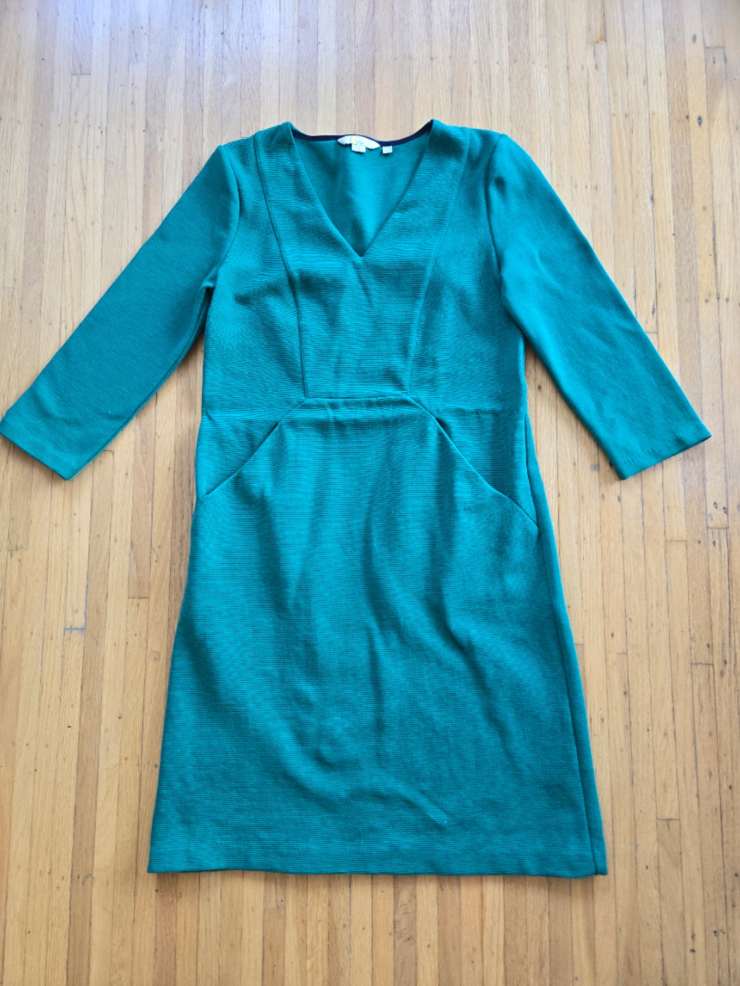 Boden Sheath Dress Green Knee Length 3/4 Sleeve Pockets Pullover