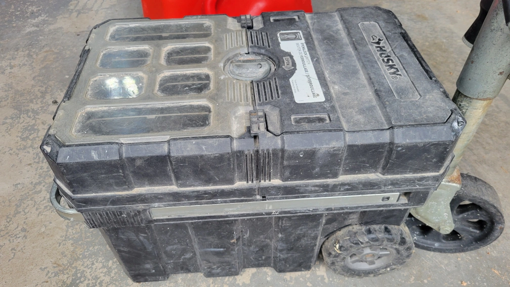 Selling a Husky mobile tool box. It's a bit dusty but still works great for storing and transporting your tools around the job site or garage