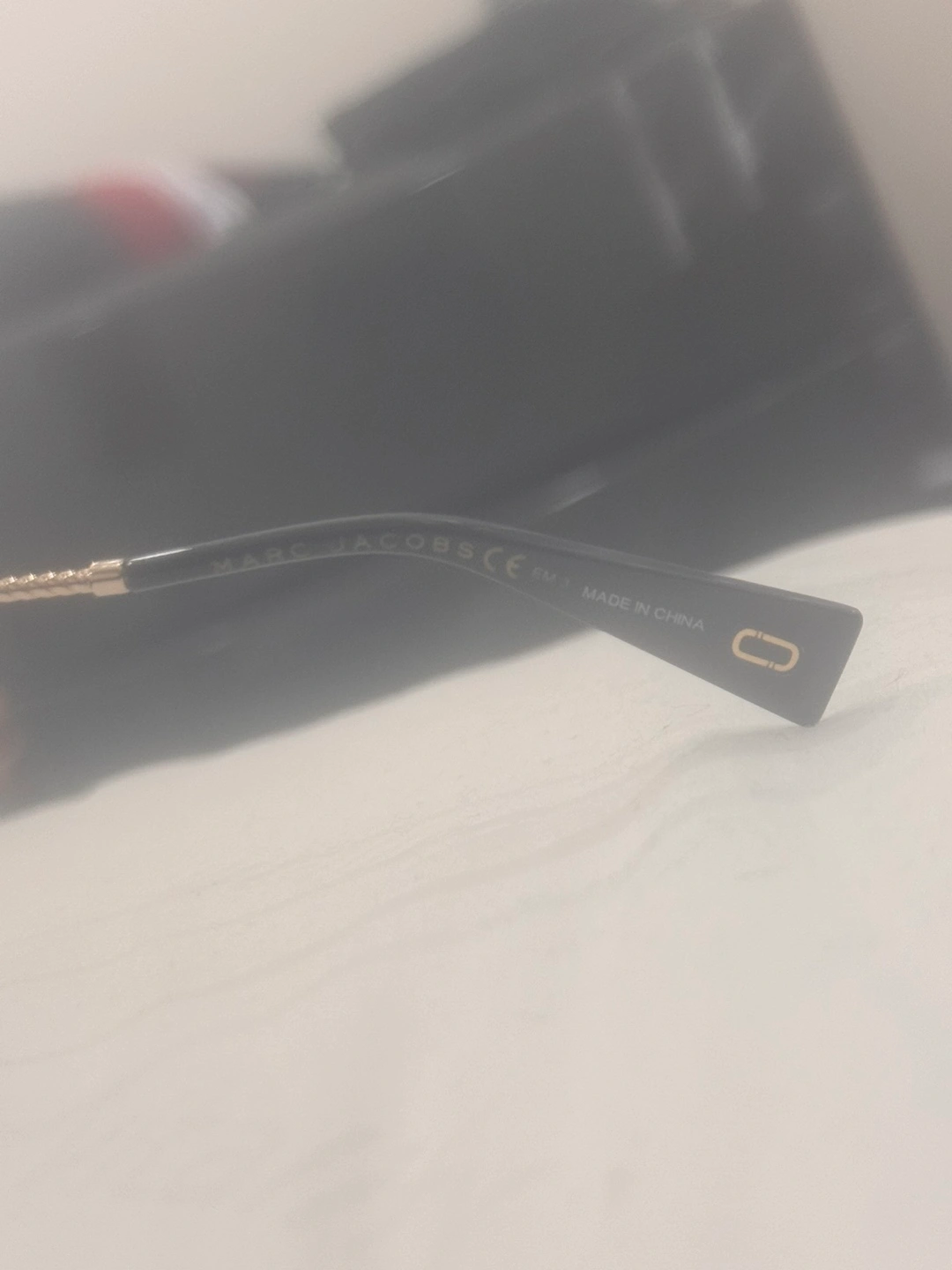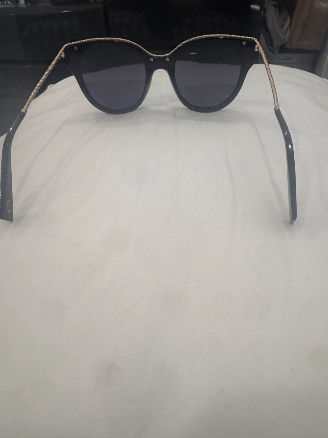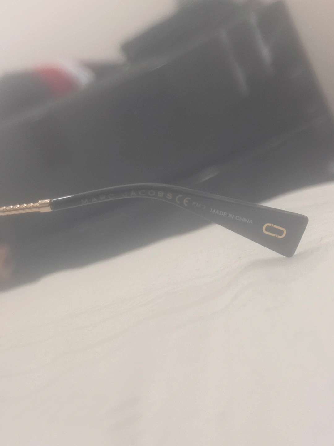 These sunglasses are in great shape and ready for a new home! They're a stylish black colour with gold accents. The brand is Marc Jacobs, so you know you're getting a quality pair of shades