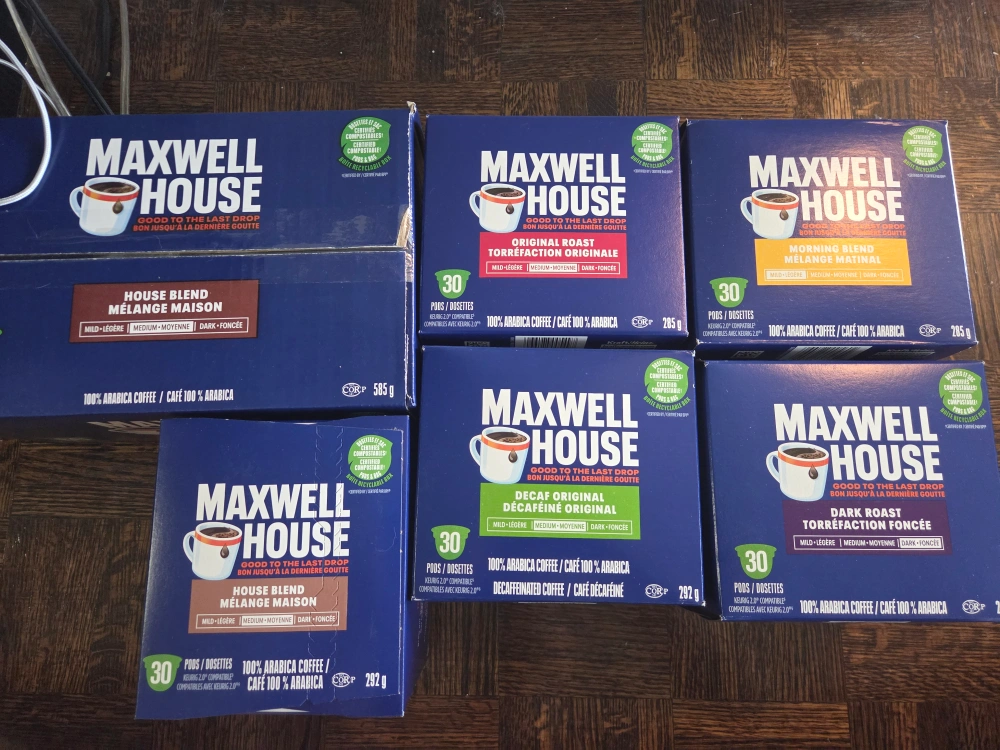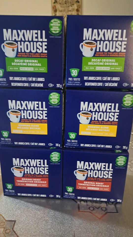 A mix of Decaf Original, Morning Blend, and Original Roast. Each box contains 30 pods of 100% Arabica coffee