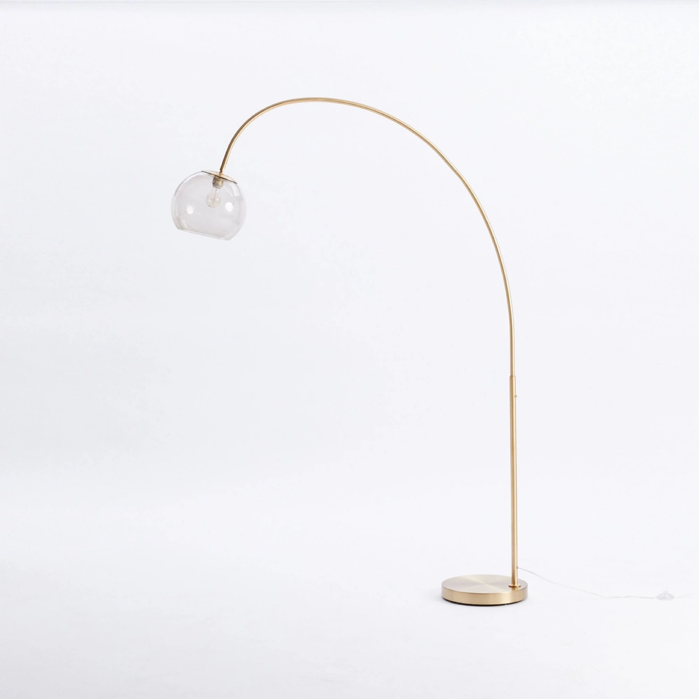 Add a touch of elegance to your living space with this beautiful gold arc floor lamp! The lamp features a sleek, curved design and a stylish glass shade that provides a warm and inviting glow. It's perfect for living rooms, bedrooms, or any space where you need some extra lighting.