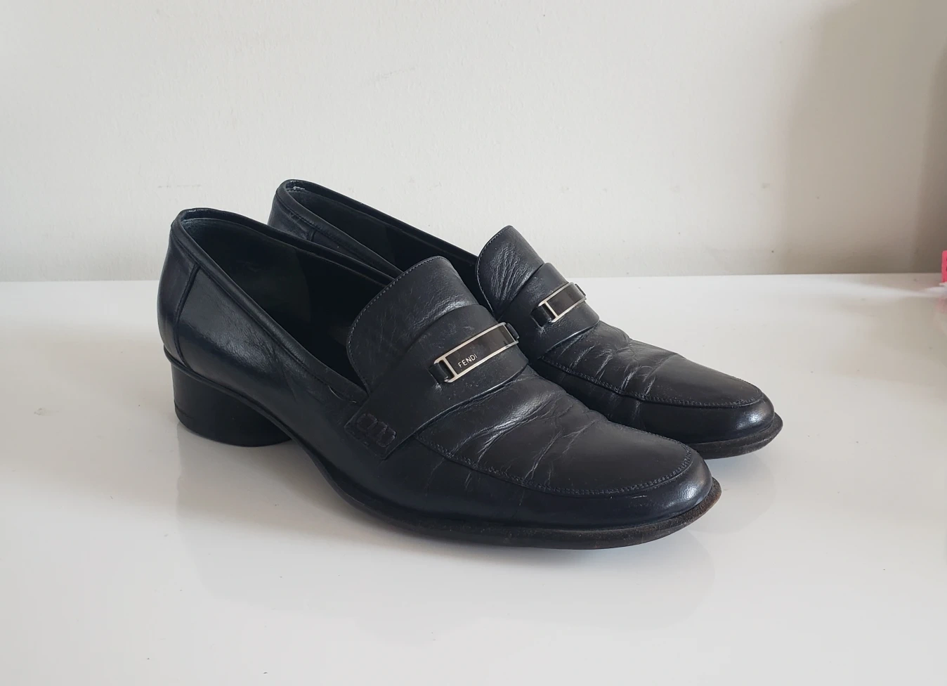 Fendi Loafers Navy Blue Leather - Vintage 90s Academia