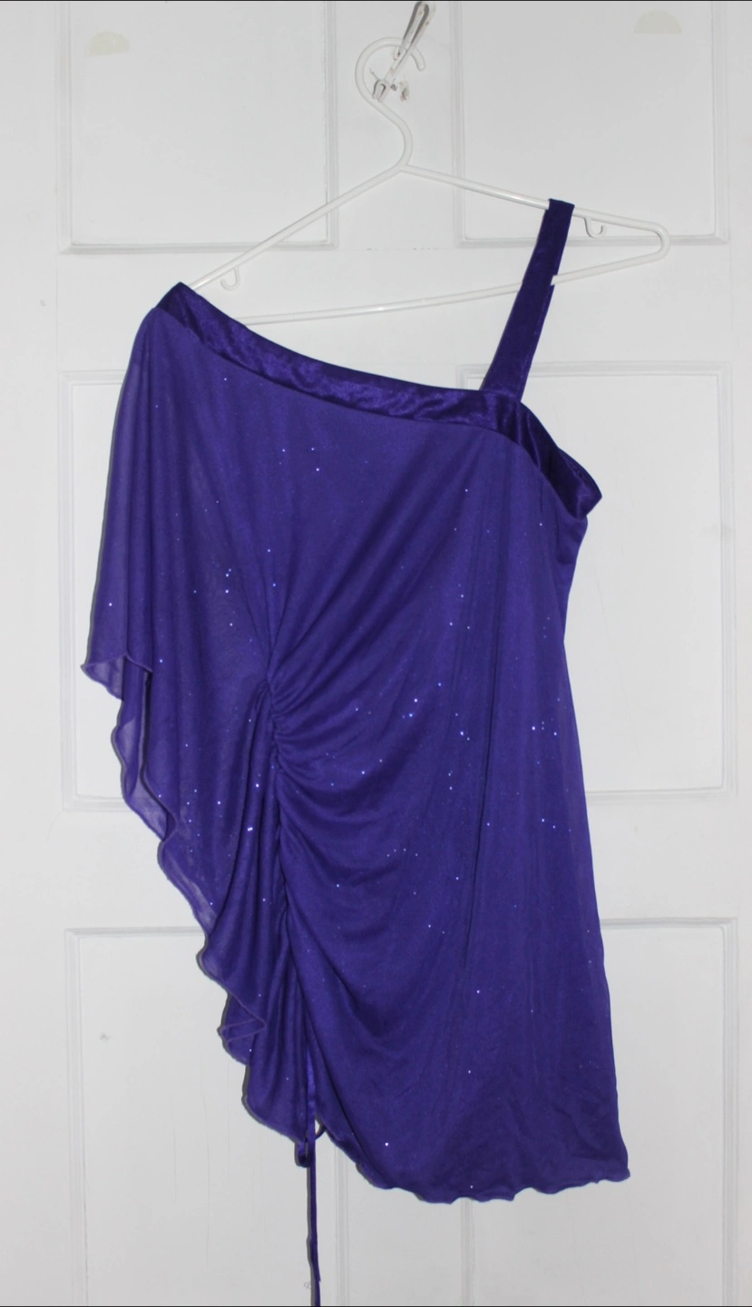 Here's a cute purple one-shoulder top! It's in great condition and ready for a new home. The design features a stylish, asymmetrical look with a comfortable fit. Perfect for adding a pop of colour to your wardrobe!