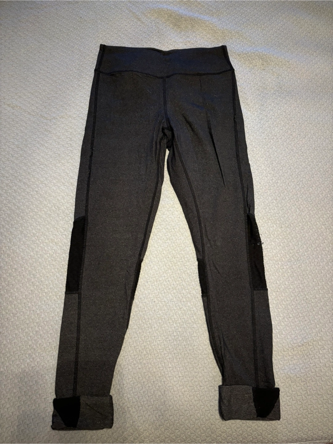 Selling a pair of athletic leggings in grey. They appear to be in good condition and ready for your next workout!