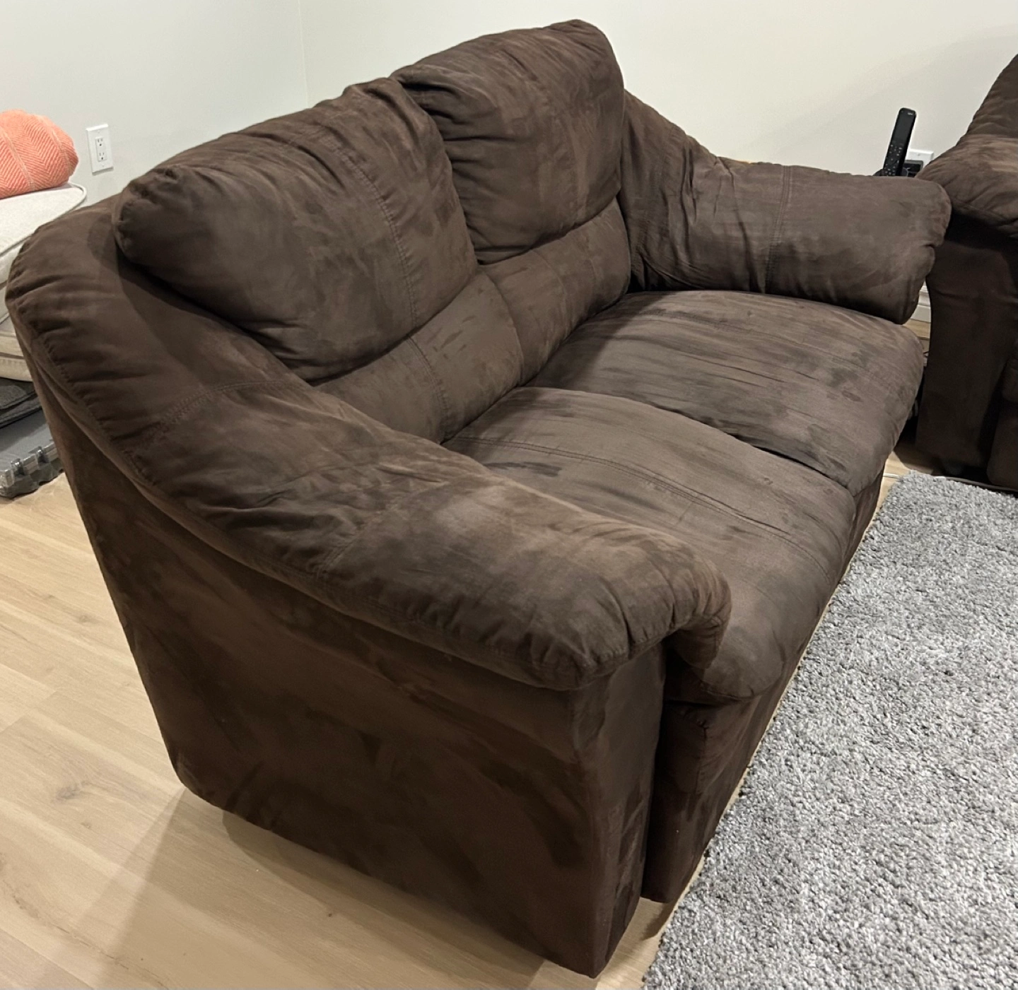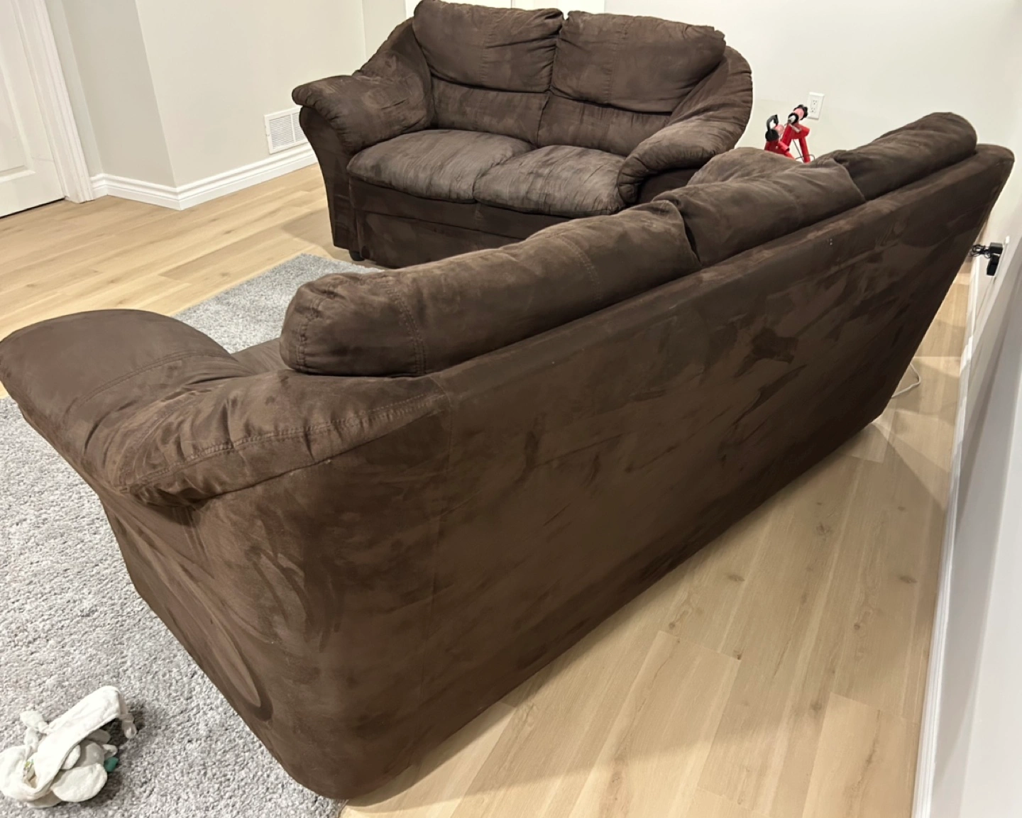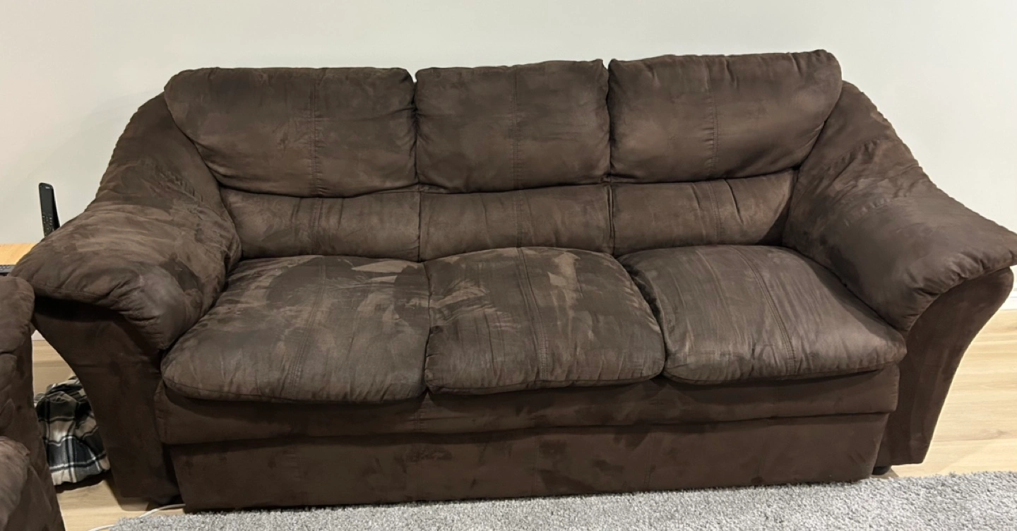 Chocolate brown Micro fibre couch and love seat.