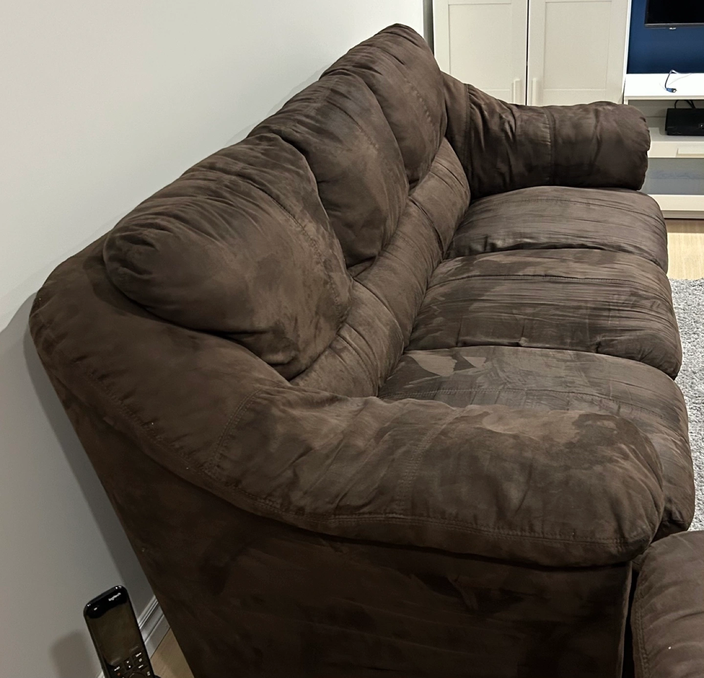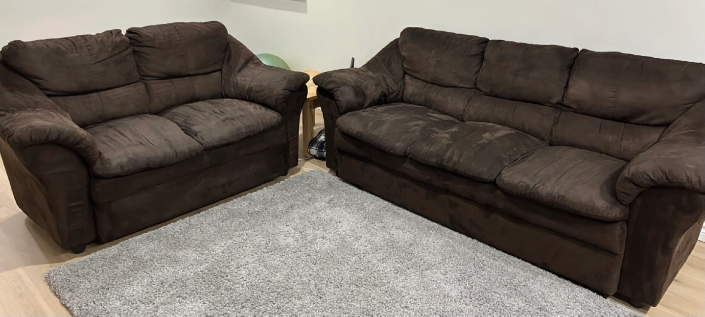 Chocolate brown Micro fibre couch and love seat.