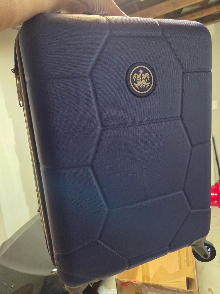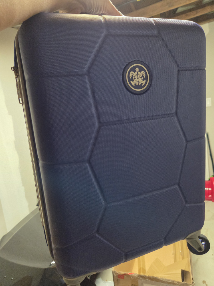 Looking to sell this Suitsuit Trend Line suitcase in navy blue. It's in great shape and ready for your next trip! The suitcase features a unique hexagonal design and smooth-rolling wheels for easy maneuverability. Perfect for carry-on or checked baggage