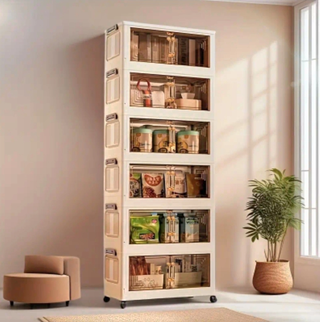 Six-Tier Foldable Storage Organizer with Lockable Wheels