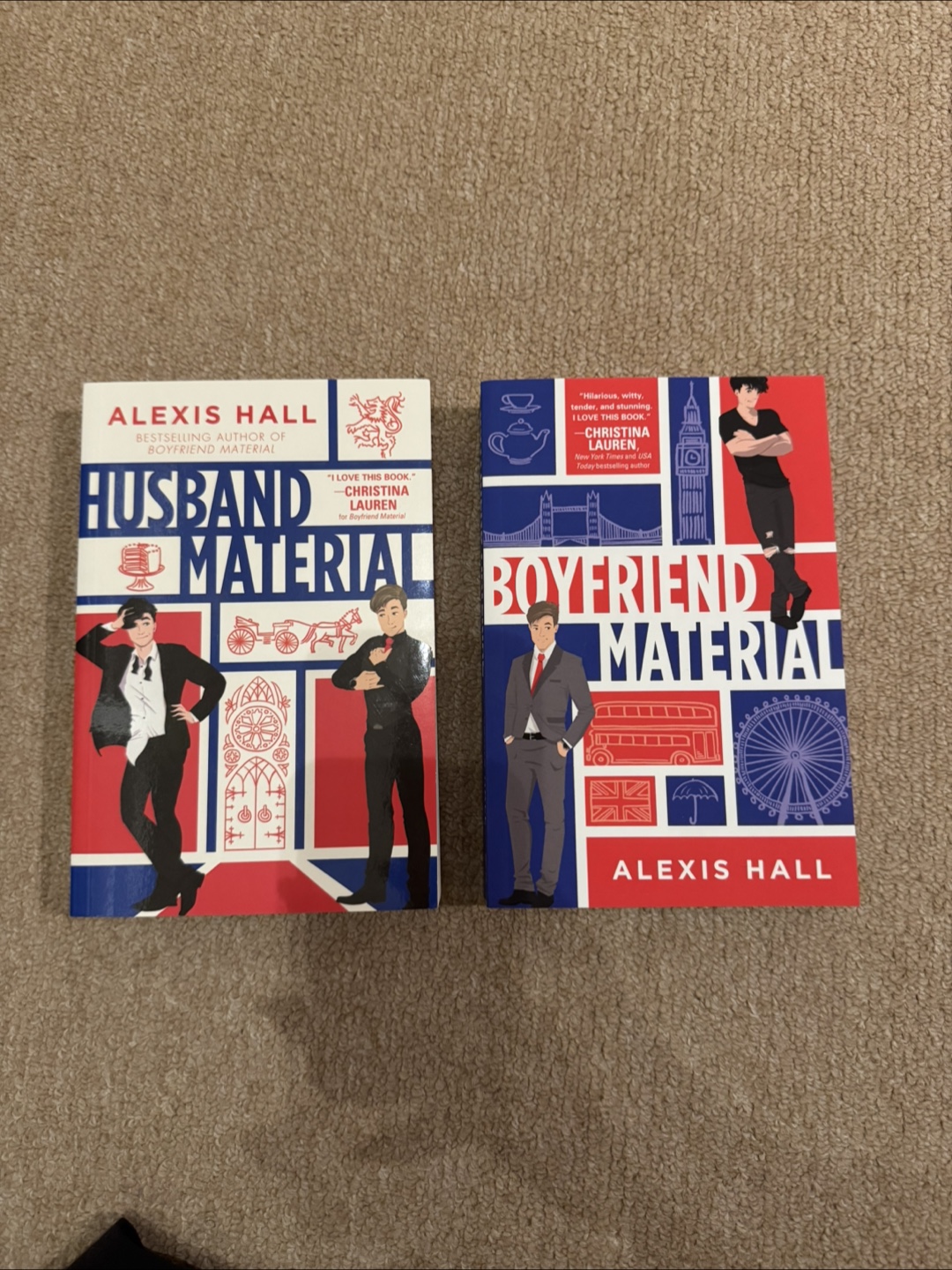 Selling a set of two books by Alexis Hall: Husband Material and Boyfriend Material.
