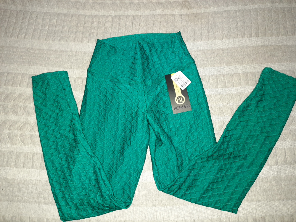Selling a pair of BONLIFE leggings. They have a unique textured pattern and are in good condition. These leggings are perfect for workouts or everyday wear