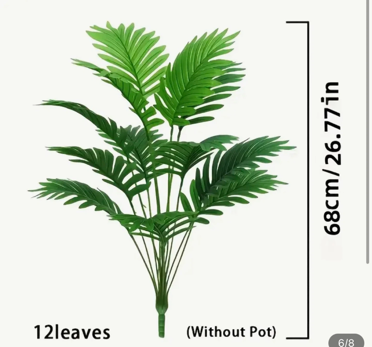 Selling an artificial palm tree plant, perfect for adding a touch of greenery to your space! It stands at 68cm/26.77in tall and features 12 leaves.