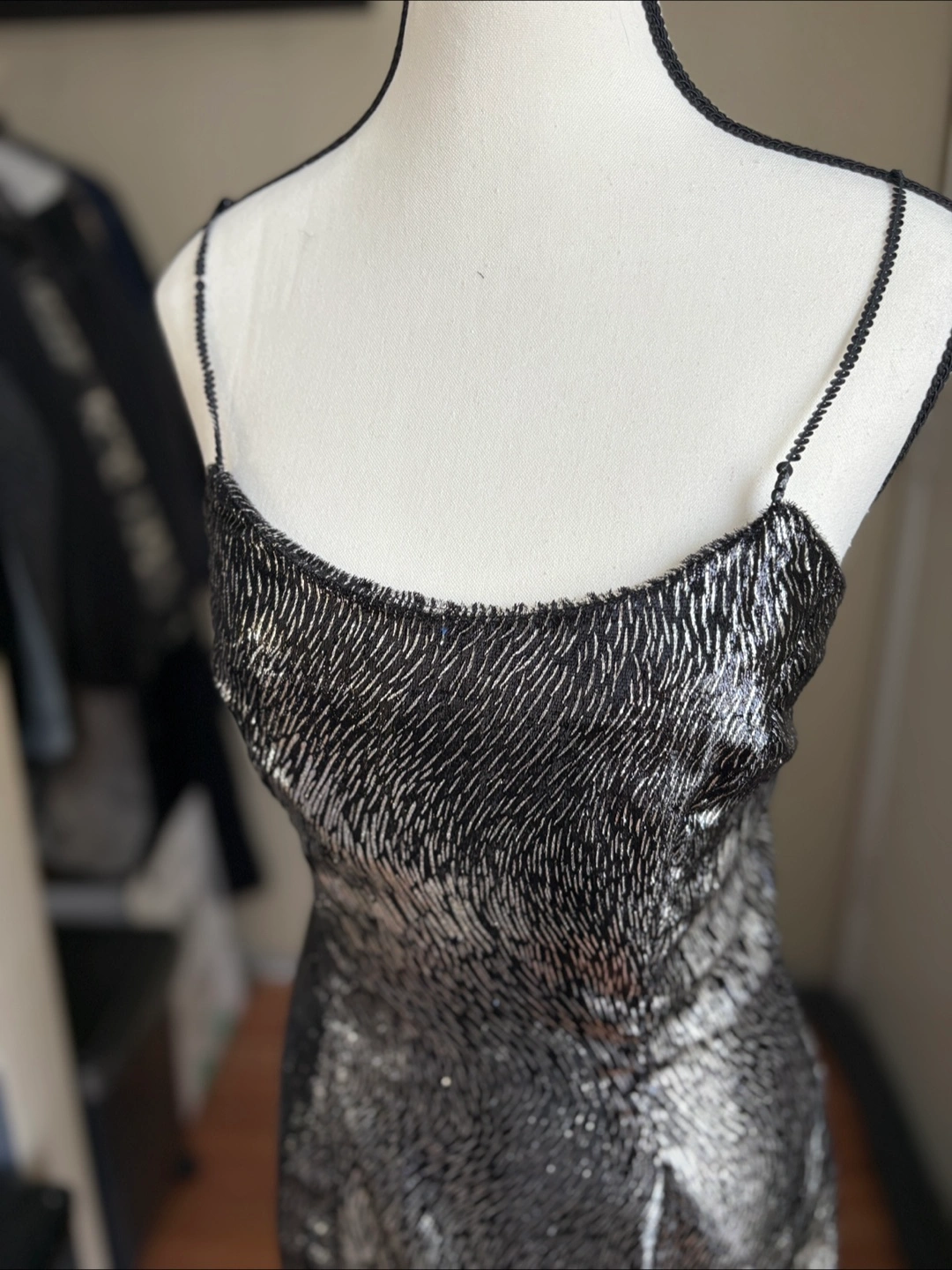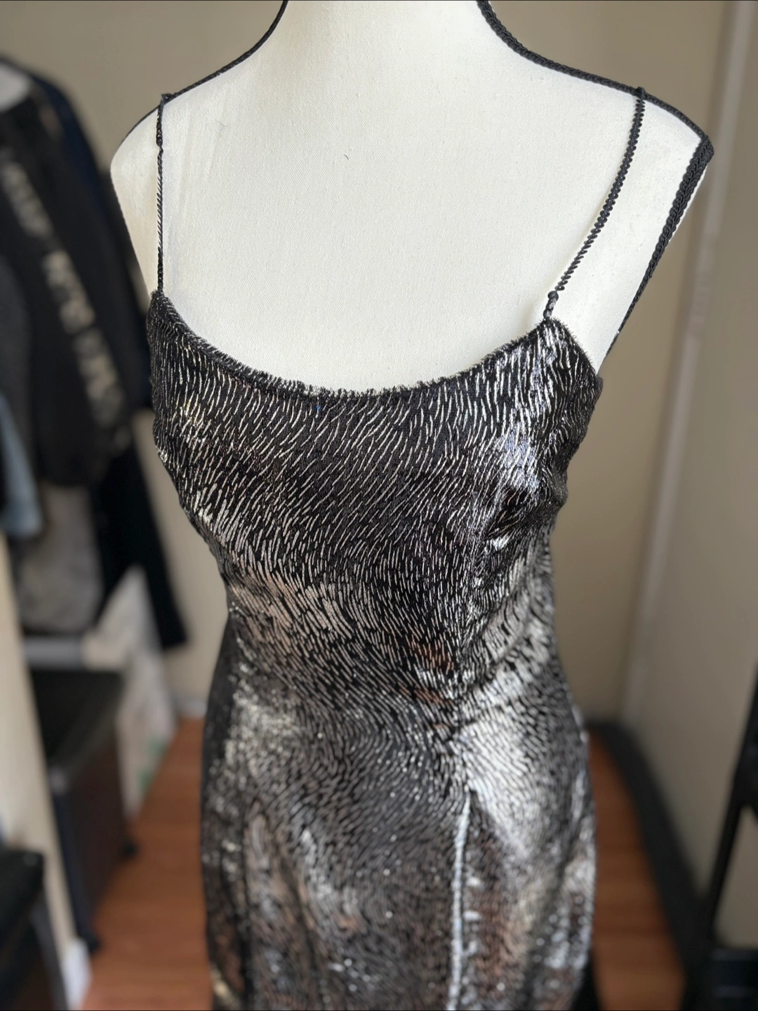 Selling a beautiful sparkly dress! It has spaghetti straps and a back zip closure . It's perfect for a night out or a special occasion. In great condition! Fits size S/XS
