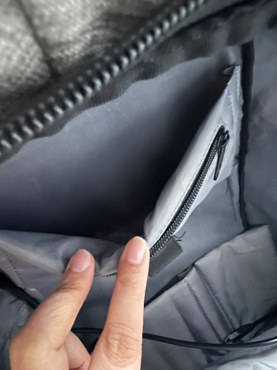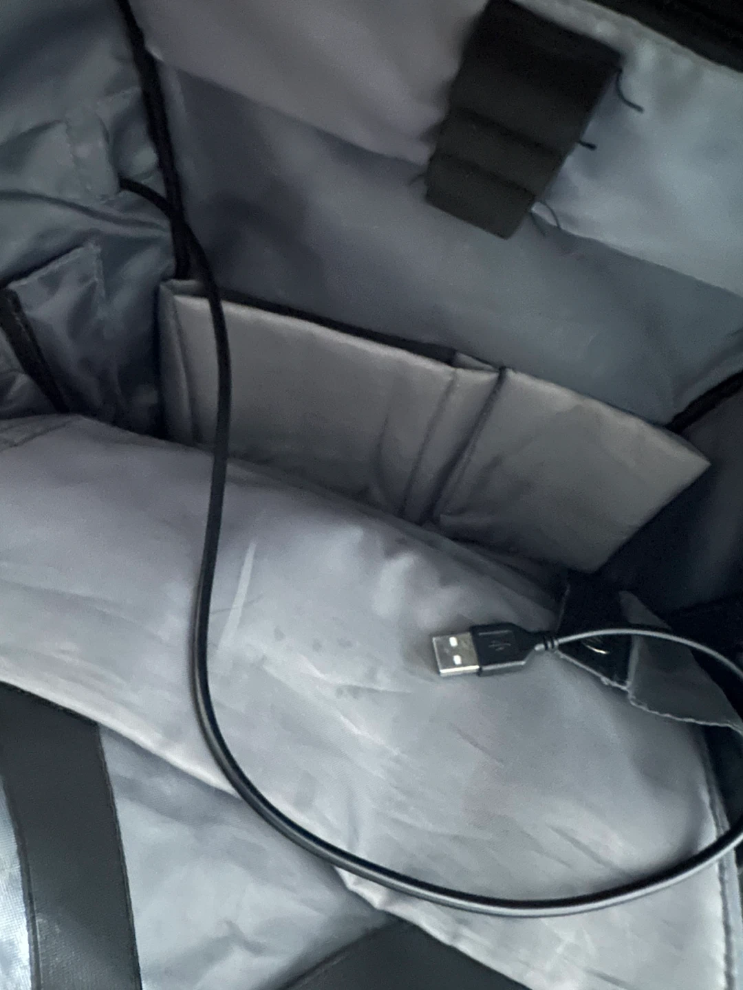 Lite Cruiser backpack. It features a gray and black design with multiple compartments inside. Tear due to normal use. Need to wash.